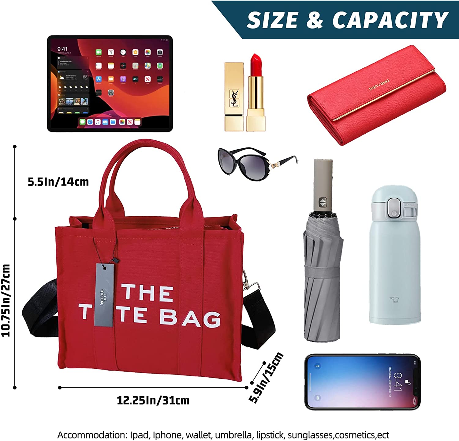 - 【Material】- The tote bag for women is made of superior encrypted canvas, sturdy and wear-resistant. Styled with bold block lettering, fashionable and popular. It is not only used for storing your items but also showing your personality.