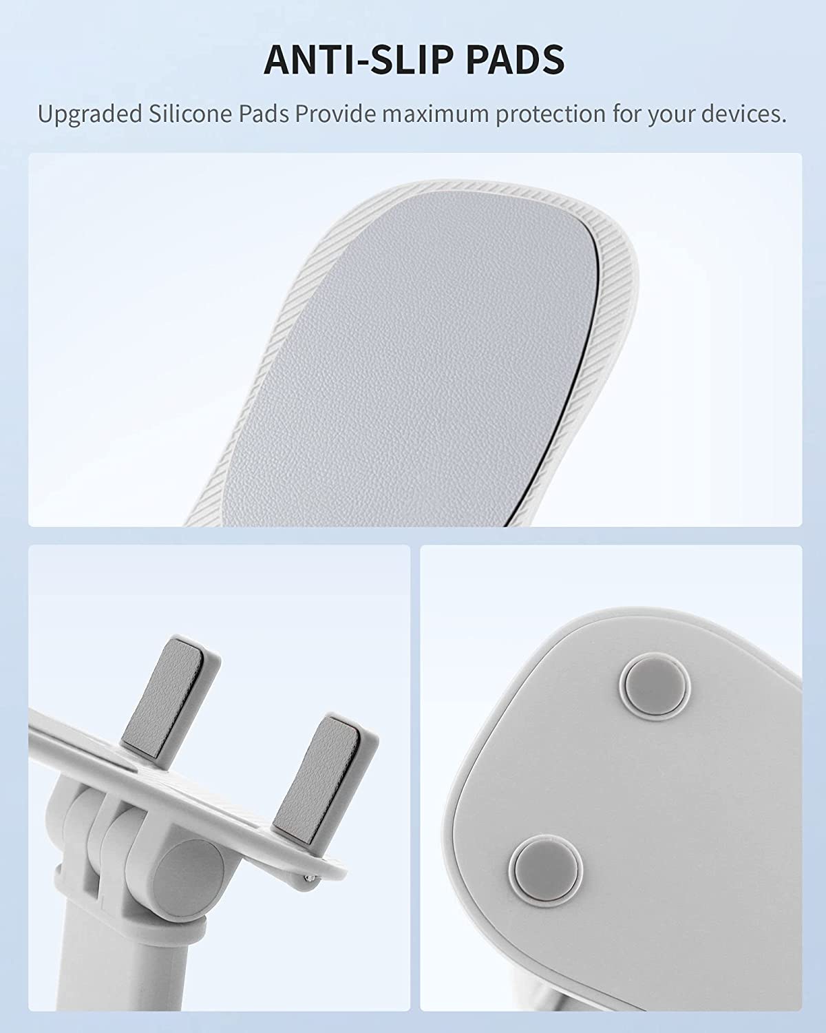 - ANTI-SLIP PADS - The padded front surface and the hook of this cell phone stand are fully covered by anti-skid silicone. Compared with other phone stands, the silicone pads were upgraded and became larger. Providing maximum protection for your device from any scratches and slides.