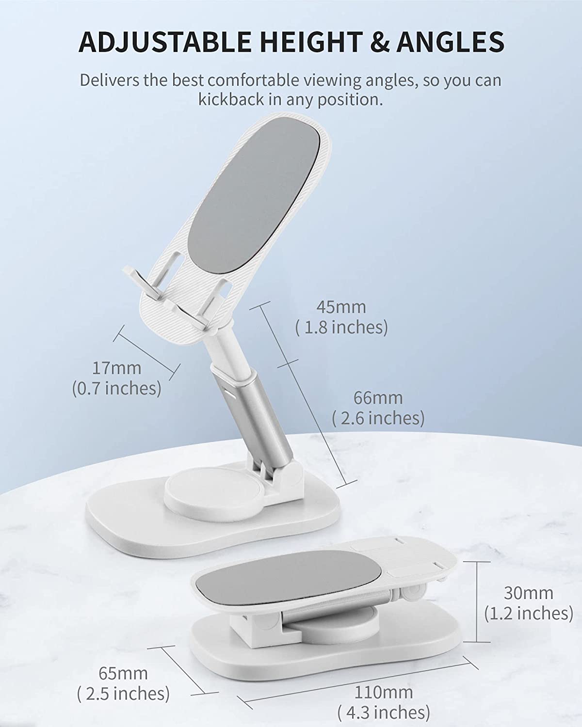 - HANDS-FREE ENTERTAINMENT - Having this desktop phone holder to prop up your phone and adjust it to the ideal position, you can free your hands while watching videos, making phone calls, using Facetime, and viewing recipes. Plays a good role in your office, kitchen, nightstand, or dining table.