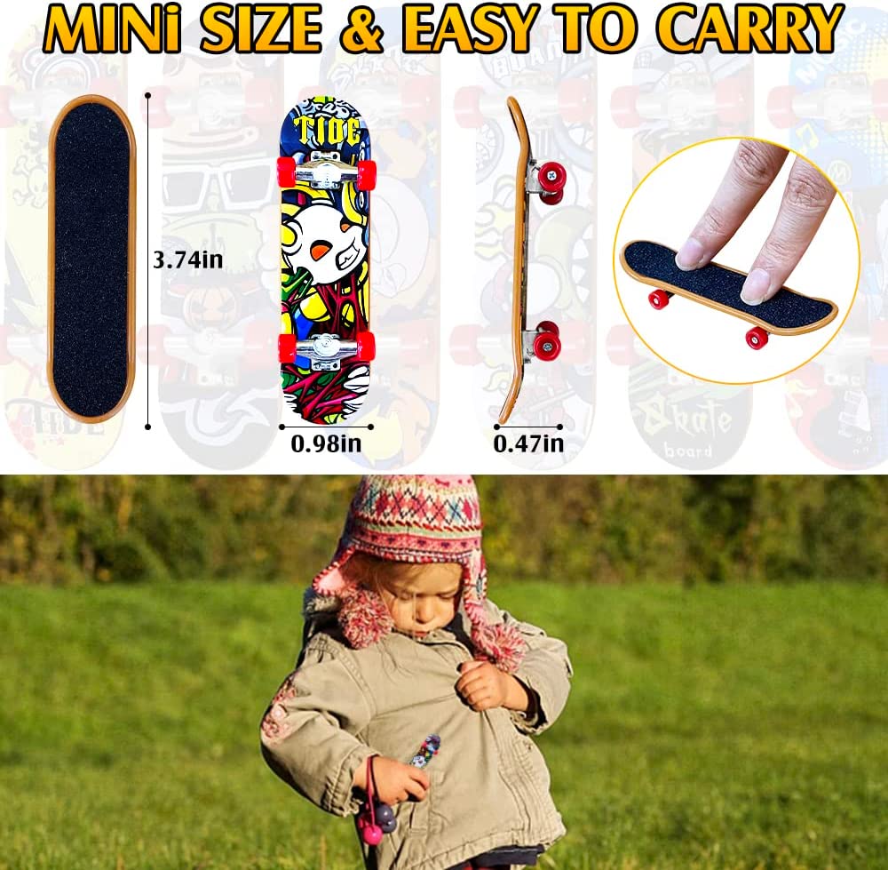 ☆ MINI SIZE & EASY TO CARRY: Each mini finger skateboard is about 3.74 inches long and 0.98 inches wide, and its small, portable size makes it easy to fit in your pockets, wallets, and bags, so whether you travel or work, you can take it to play, which will bring you a lot of convenience and endless fun. suitable for children as well as adults.