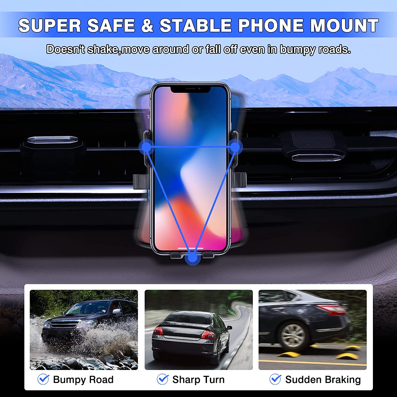 【Fairly Easy to Install】Align, press and snap the phone holder base to the air vent and put the mobile phone holder to the bracket. Please loosen the nut a little when you want to adjust the angle. High quality ABS material with soft rubber pad inside the clamps and bottom foot, safe, sturdy and durable, won’t fall out once installed.