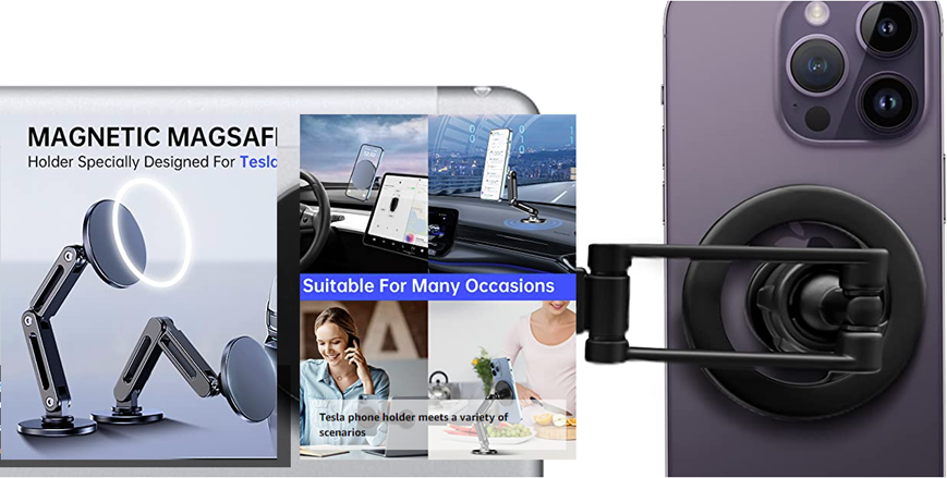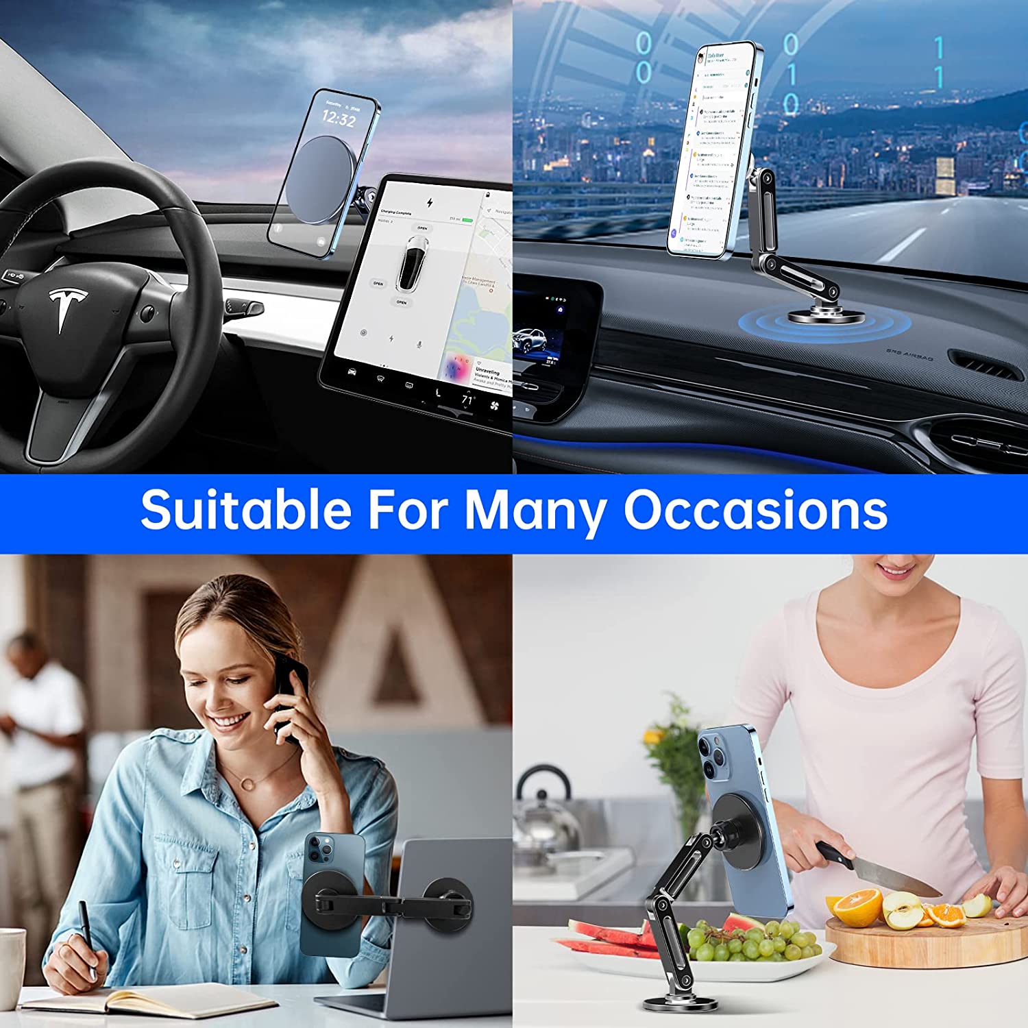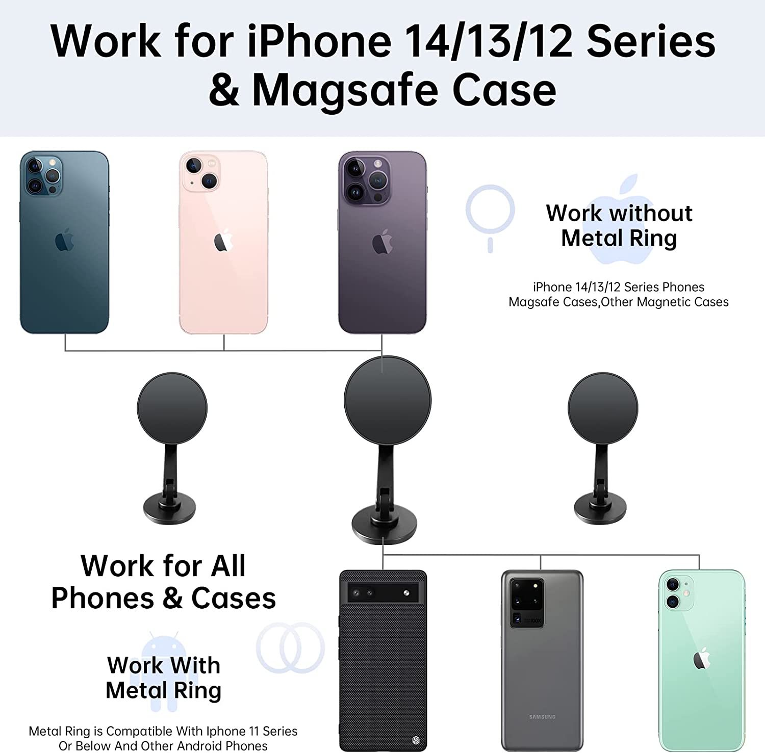 【Perfect Car Phone Holder】This tesla car mount is for iPhone 14/ 13/12 pro max mini compatible with magSafe cases and other magnet cases. For other models of iphones and other series of phones we offer 3 additional metal rings. (Note: If your iphone12/13/14 case is thicker, Other iphone models and Android phones, Please attach the metal ring to the back of the phone or case.)