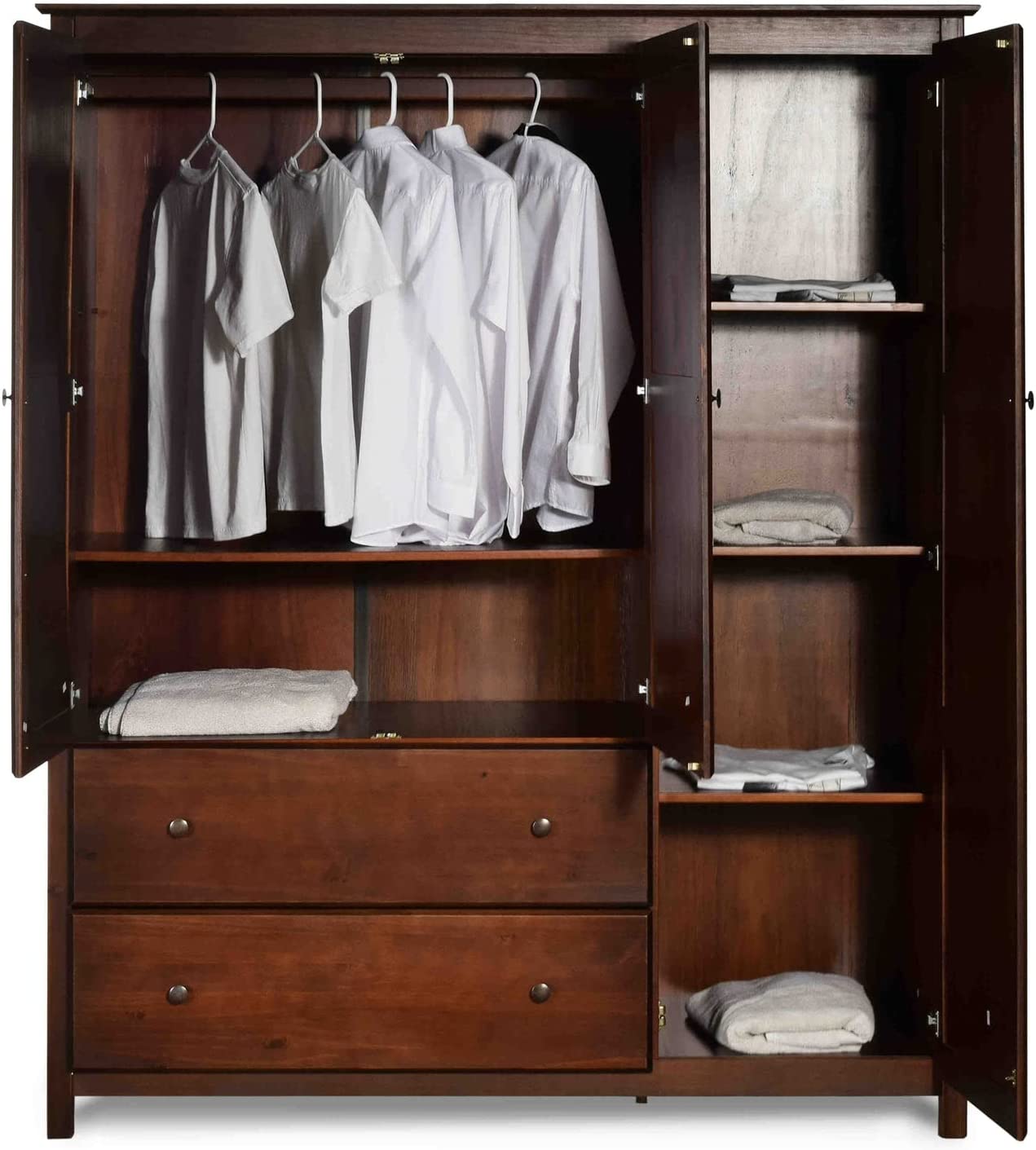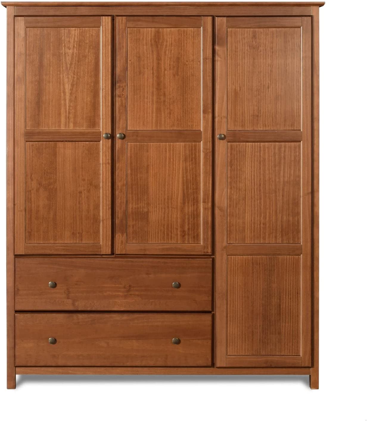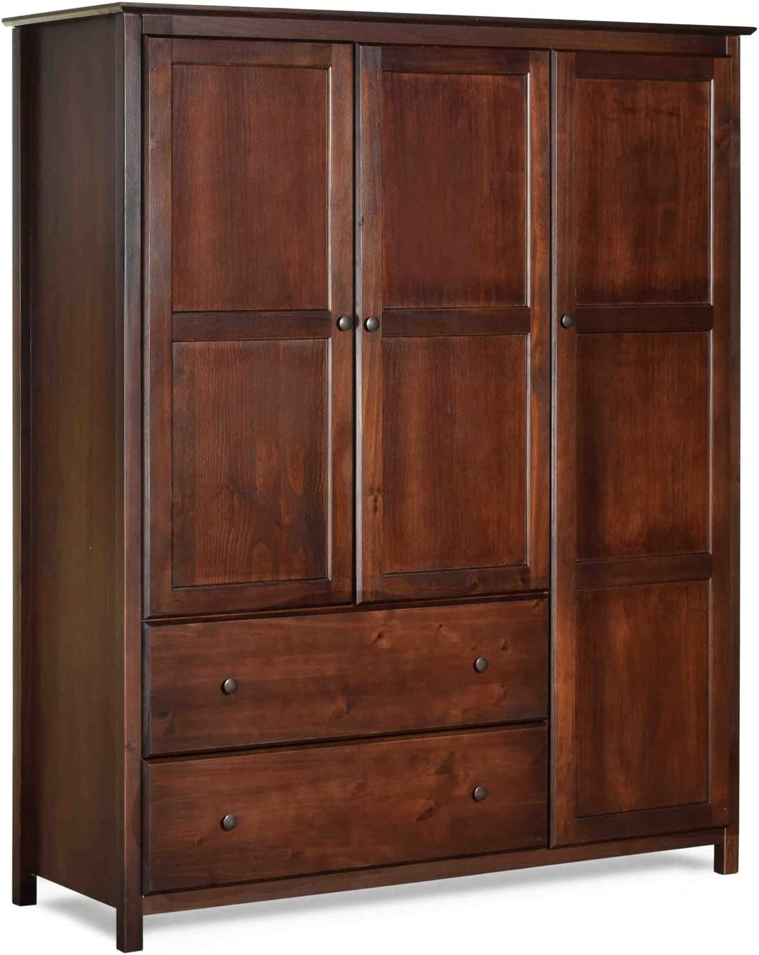 Grain Wood Furniture Shaker 3-Door Wardrobe, Walnut