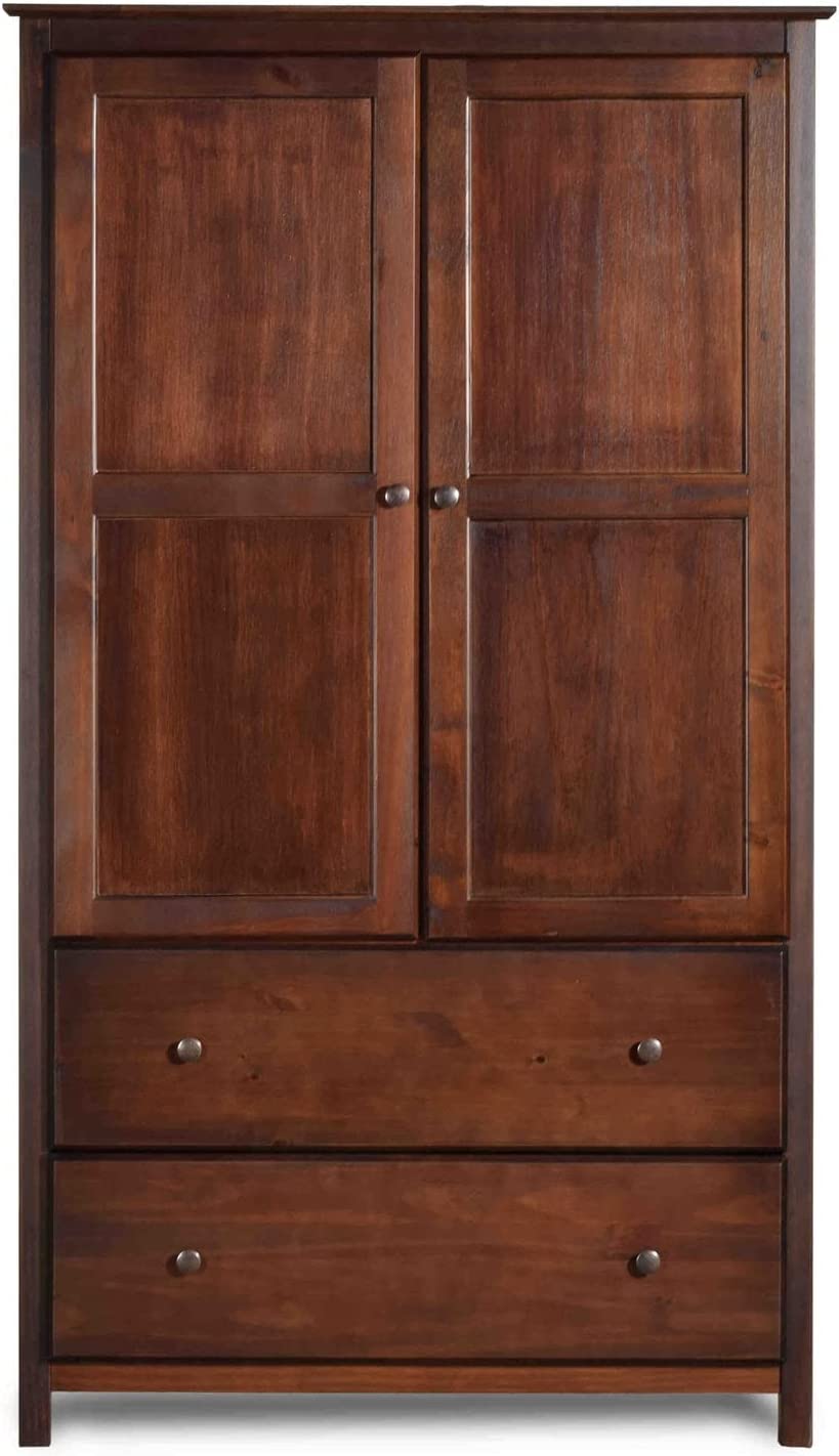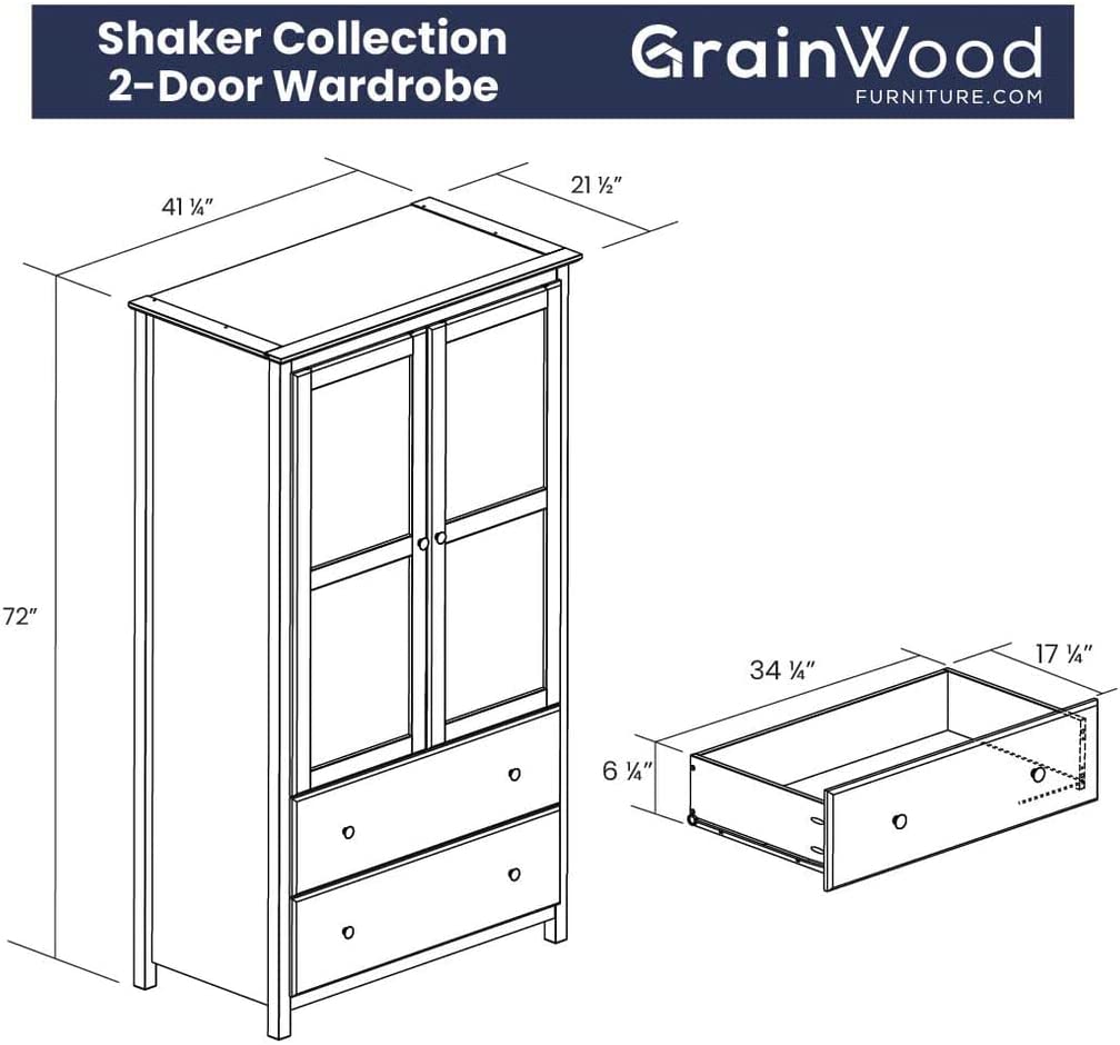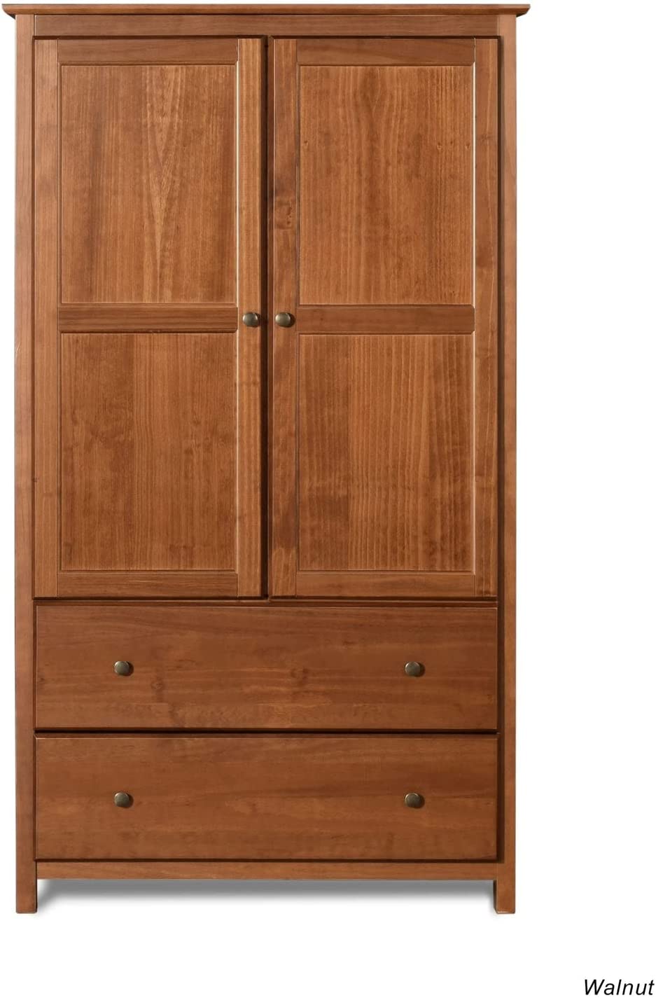 Grain Wood Furniture Shaker 2-Door Wardrobe, Walnut