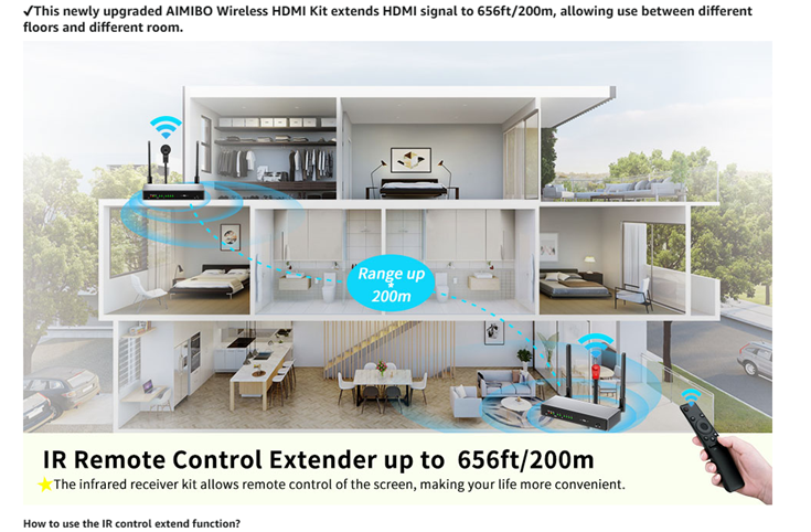 - 【Up to 8 Kits use in one location】 - Each pair of AIMIBO Wireless HDMI transmitter and receiver can be set with a independent channel to allow multiple extender kits to be used in the same environment without interference.