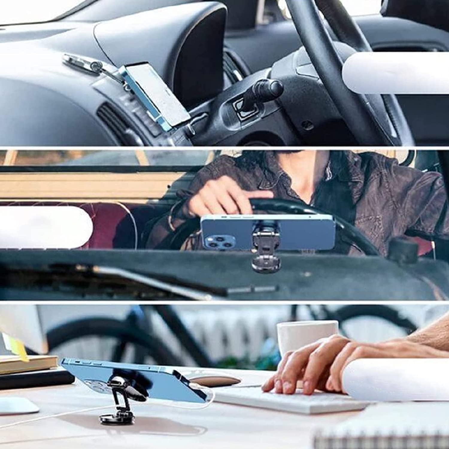 Folding Magnetic Bracket: Paste on the curved surface, stable upgrade, strong suction force, unobstructed view. Retractable, foldable in one second, small and stable, easy to fold when not in use, gets rid of clutter, compact, and does not take up space.
