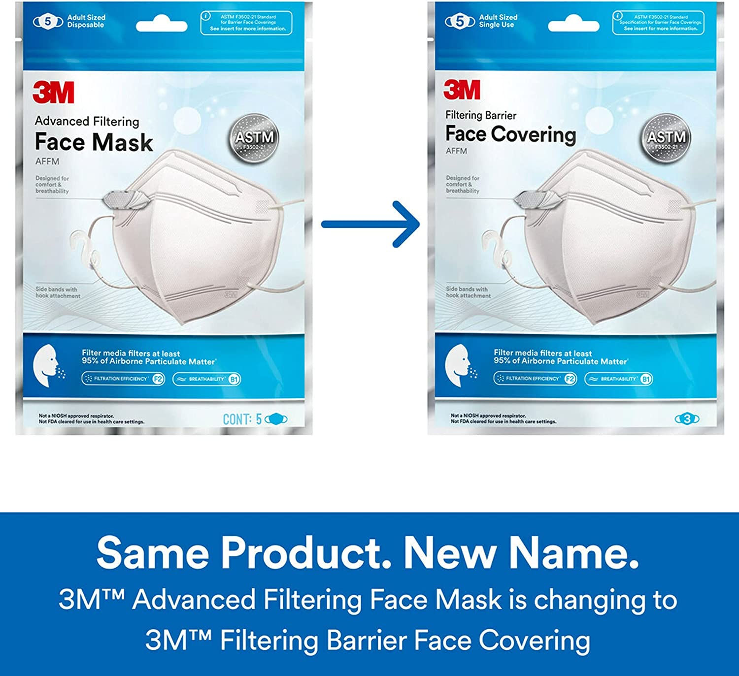 - Same product with a new name. 3M Advanced Filtering Face Mask is changing to 3M Filtering Barrier Face Covering