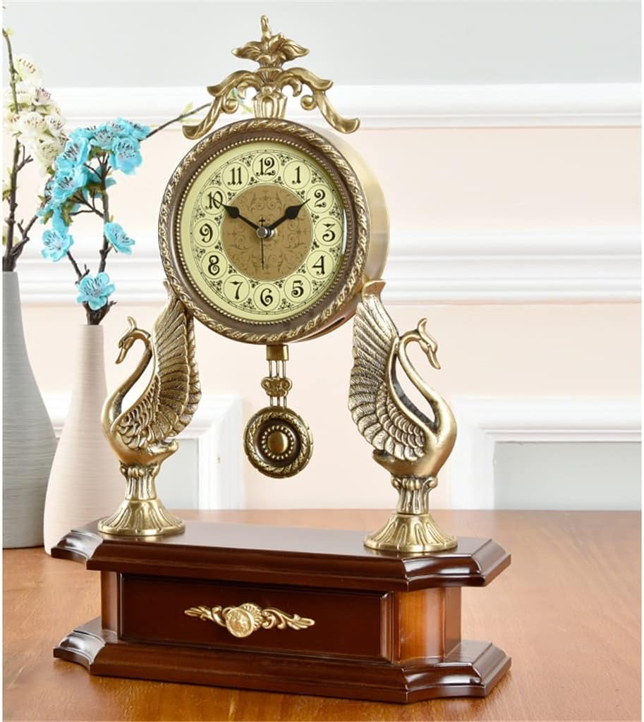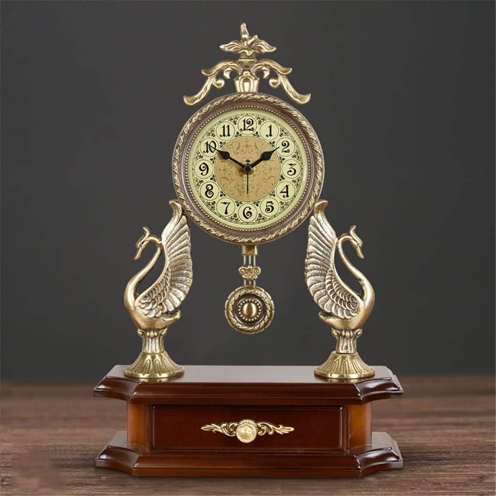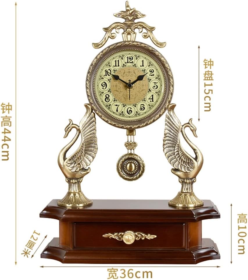 ZSEDP European Antique Mute Desk Clock Large Living Room Quartz Clock Atmospheric Brass Accessories Clock Pendulum Clock