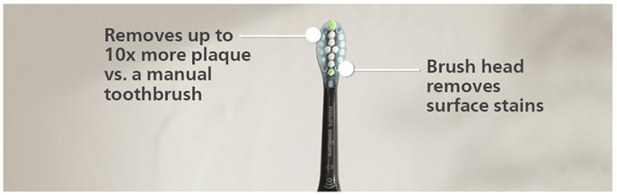 • Removes up to 10x more plaque vs. a manual toothbrush