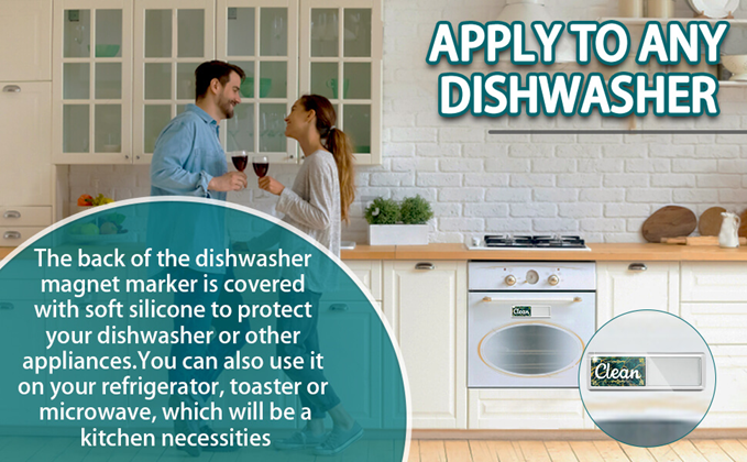 - SUITABLE FOR ANY DISHWASHER: This clean dishwasher sign is made with super strong refrigerator magnets on the back, comes with a strong adhesive and is dual purpose and suitable for any dishwasher. The back of the dishwasher magnet marker is covered with soft silicone to protect your dishwasher or other appliances. You can also use it on your refrigerator, toaster or microwave.