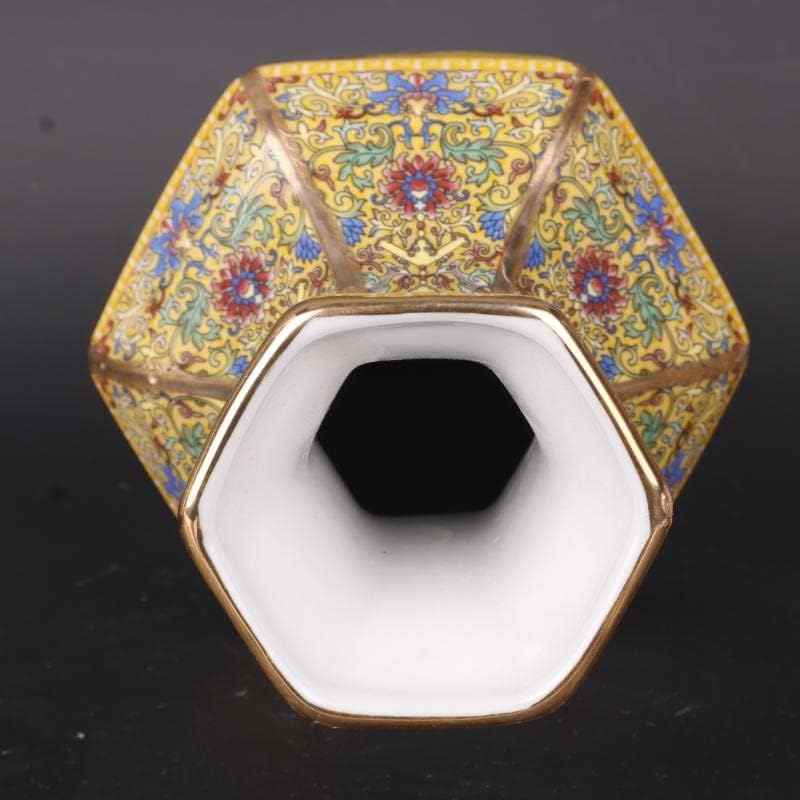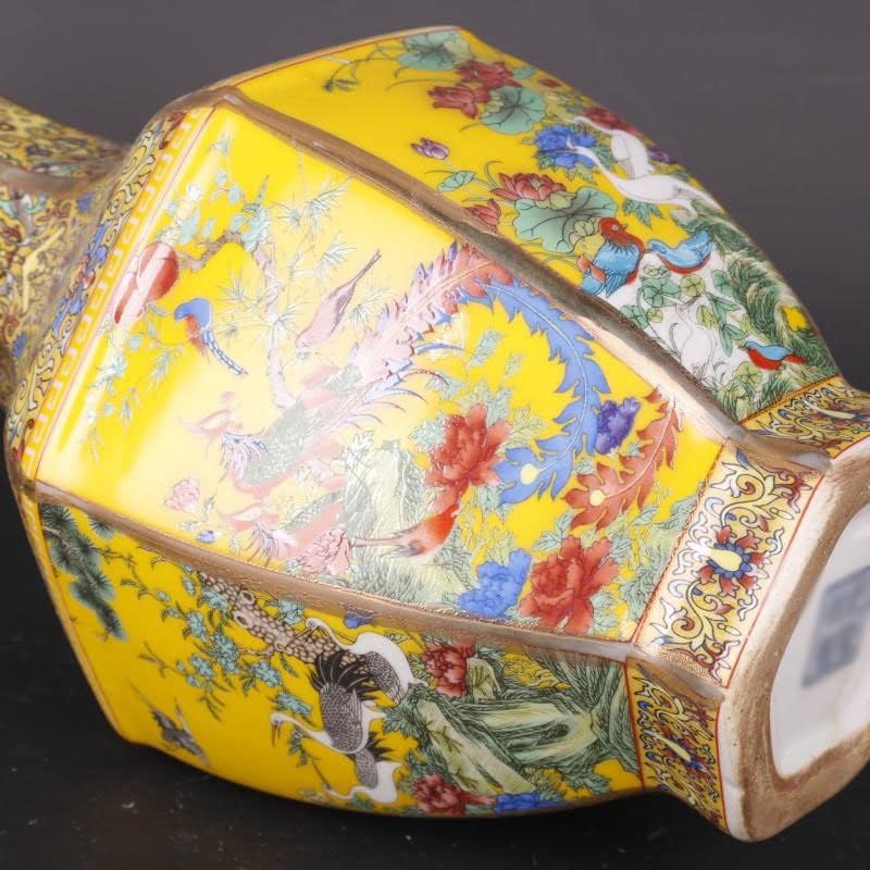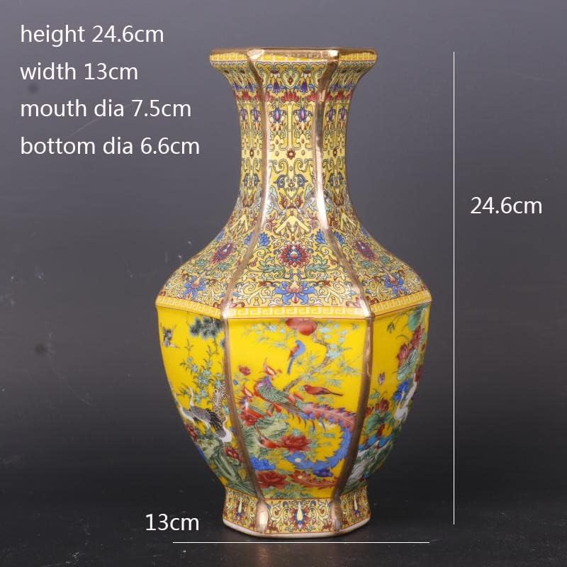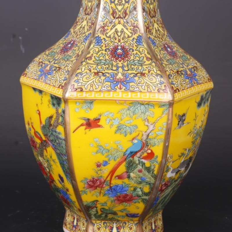 ZSEDP Jingdezhen Antique Enamel Hexagons Vase Yellow Flower and Bird Pattern Vase