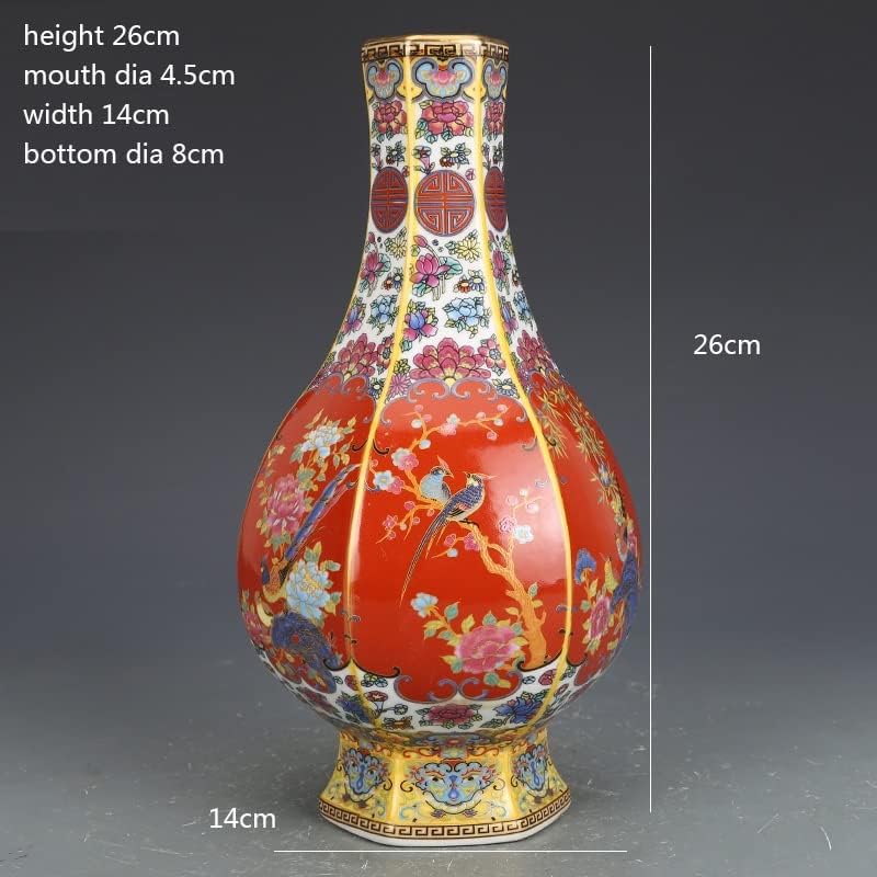 ZSEDP Ceramics Ornaments Enamel Hexagonal Vase Antique Porcelain Porch Dried Flower Vase