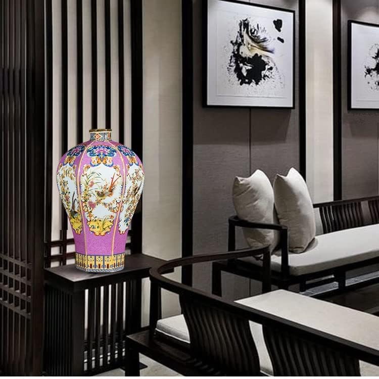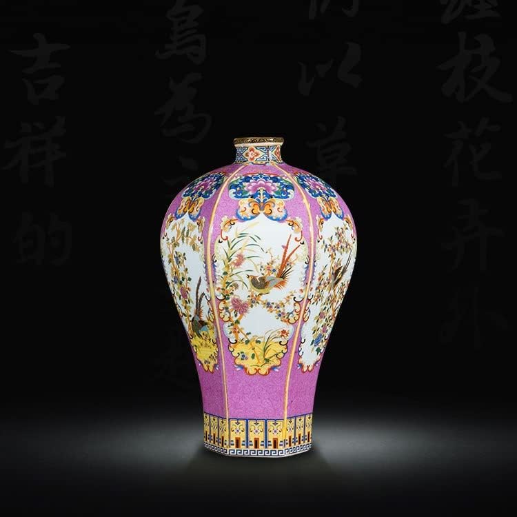 ZSEDP Ceramic Vase Ornaments Antique Enamel Porcelain Hexagonal Red Vase Gift Classical Home