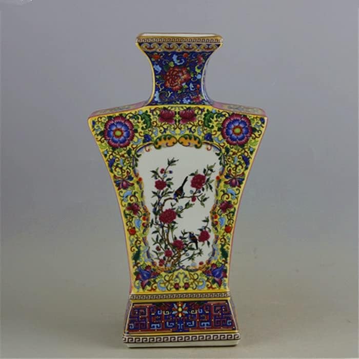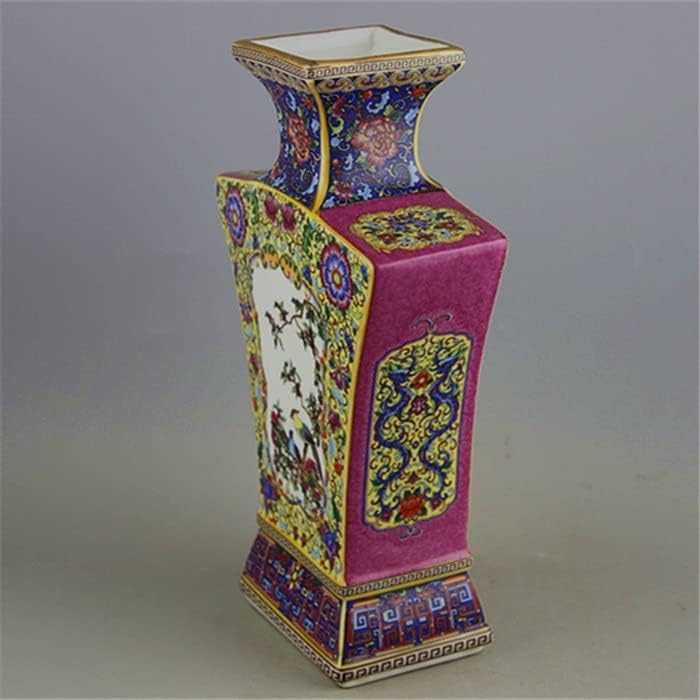 ZSEDP Jingdezhen Antique Enamel Square Vases Flowers and Birds Pattern Ancient Porcelain