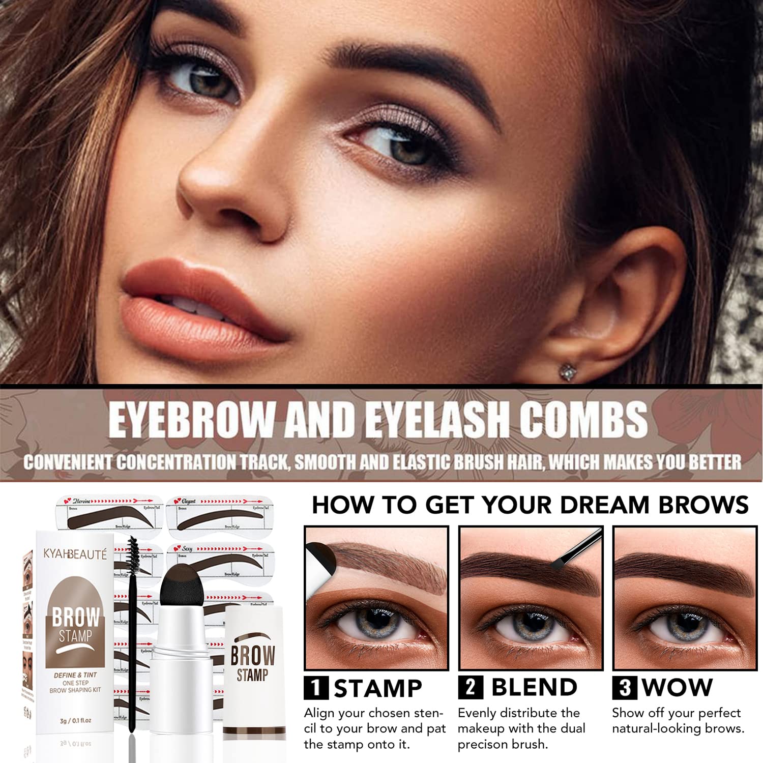【BEAUTY FOR EVERYONE 】Comes with Ten different eyebrow stencils and three popular colors of stamp to choice: Dark Brown, Medium Brown & Soft Brown, to fit all kinds of eyebrow shapes and face shapes.The newly designed silicone stencil combines the golden ratio of the face and eyebrow bone, which is suitable for various thick and thin eyebrows.