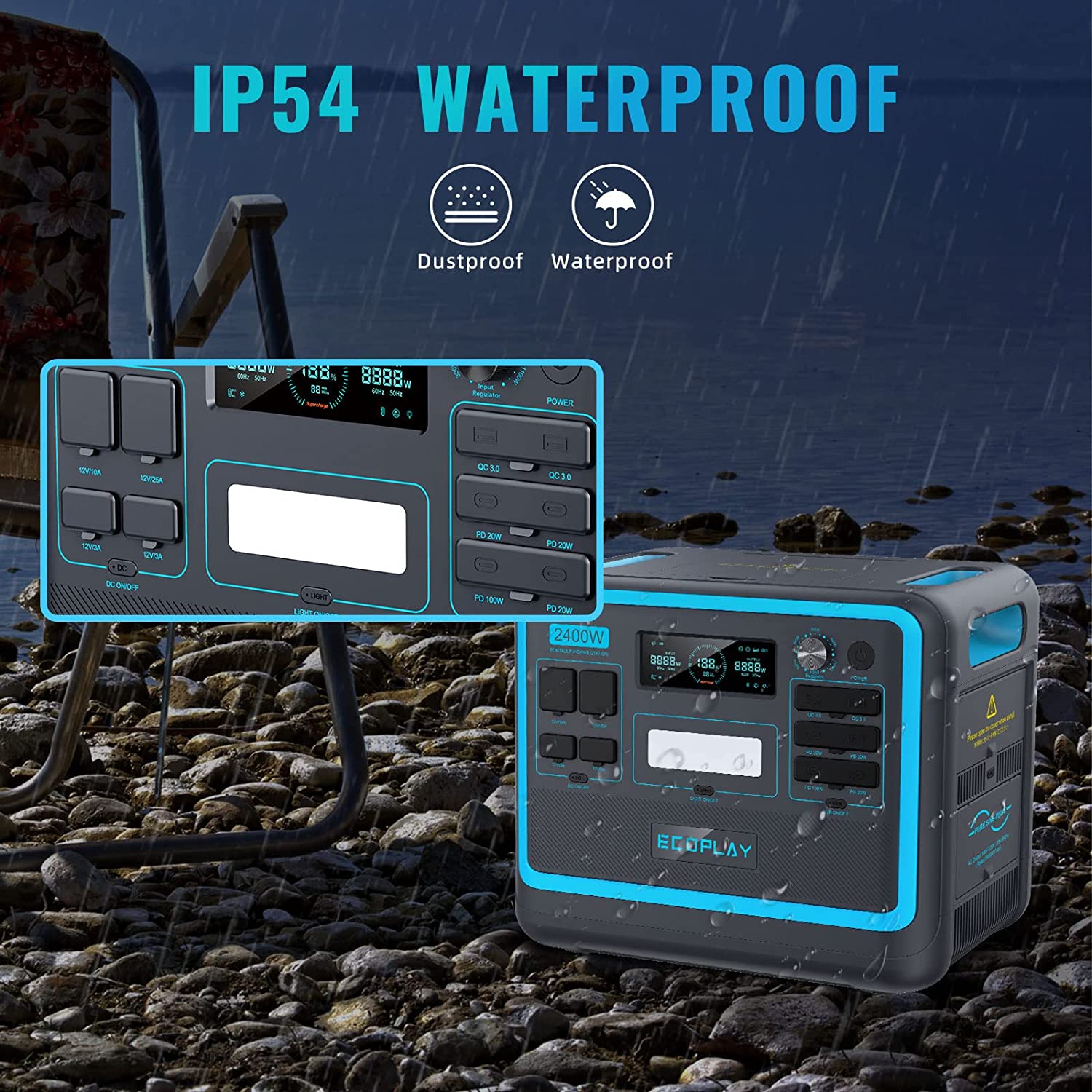 - 【FULL CHARGE IN 1.8 HOURS】Compare with other power station, Ecoplay 2400w power station adopts the most advanced bidirectional inverter technique with an AC input up to 1100W. it can be fully charged in 1.8 hours with AC adapter (included). It takes just 1.5 hours to fully charge with an AC outlet and Solar panel(500W) simultaneously. It takes 7 hours with solar panel(400W).17 hours with car charging.