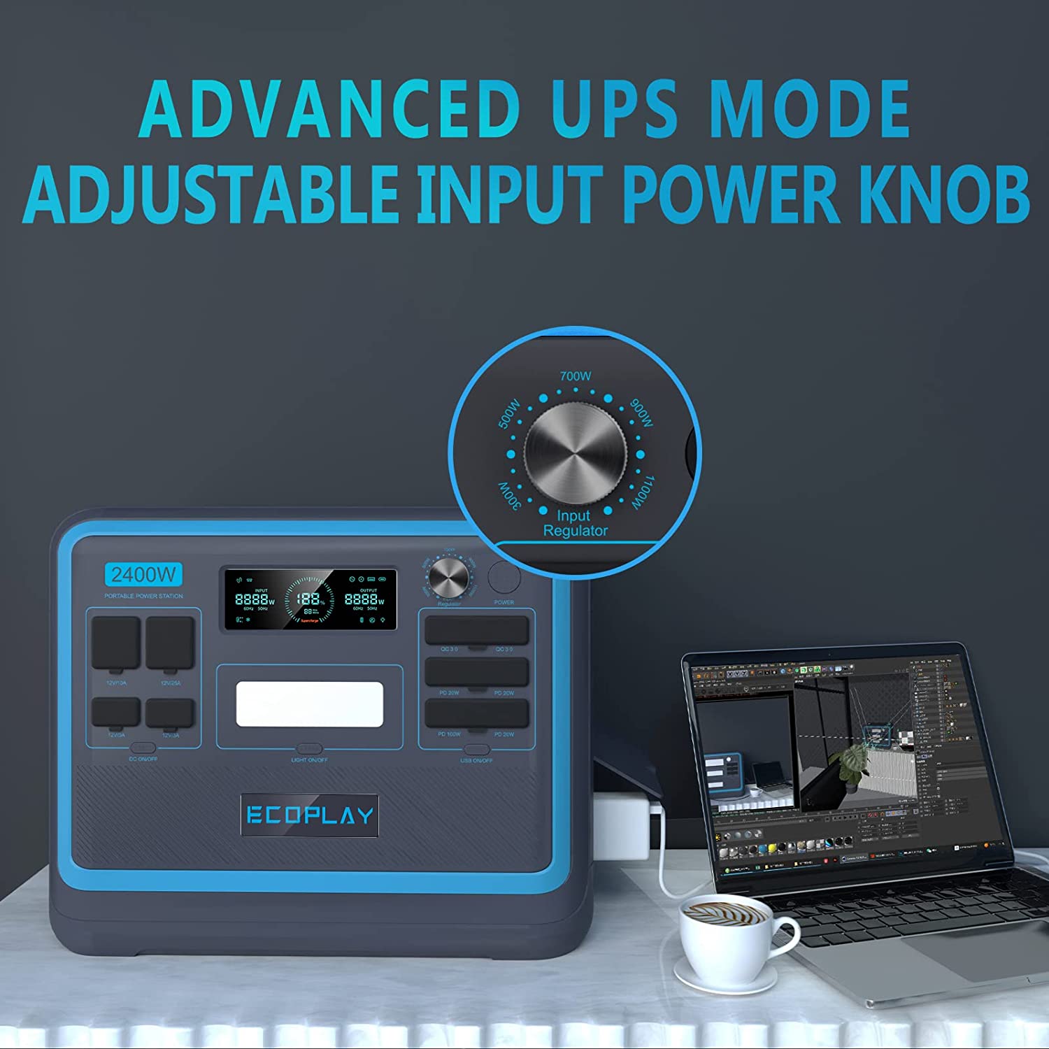 - 【 INTELLIGENT INPUT SETTING KNOB】Ecoplay portable power station has adjustment input power knob, include 300W, 500W, 700W, 900W and 1100W input power. You can adjust the charging time of the AC charger effectively and flexibly control the time. It can be adjusted not only by adjusting the device according to the input power but also by preventing the device from being damaged by voltage instability.