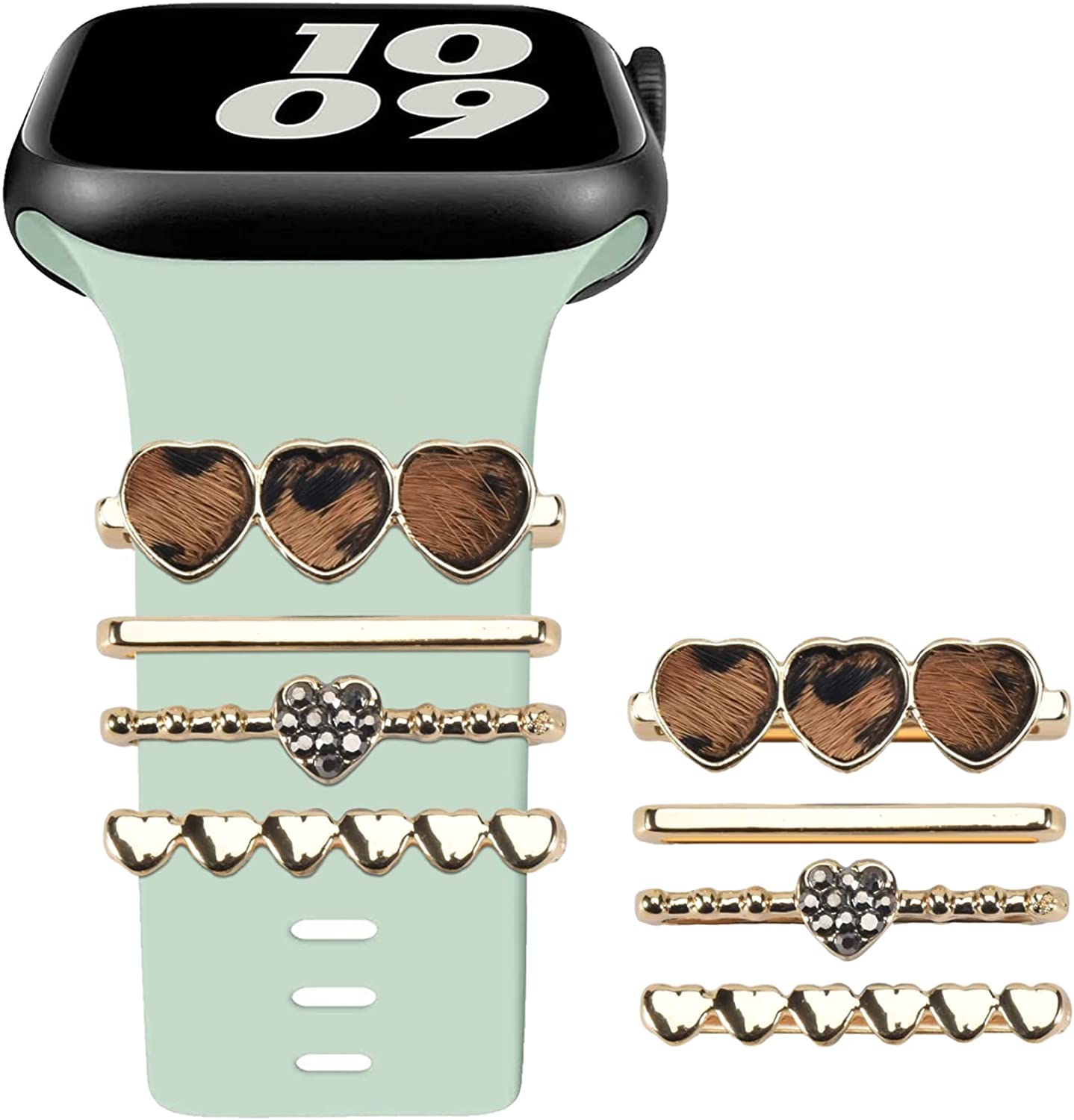 Leopard Watch Band Charms for Apple SmartWatch Band for Decorative Ring Loops 38 40 41 42 44 45mm Compatible with iWatch Series 8 7 6 5 4 3 2 1 Smart Watch Accessories Diamond Jewelry (No Watch Band)