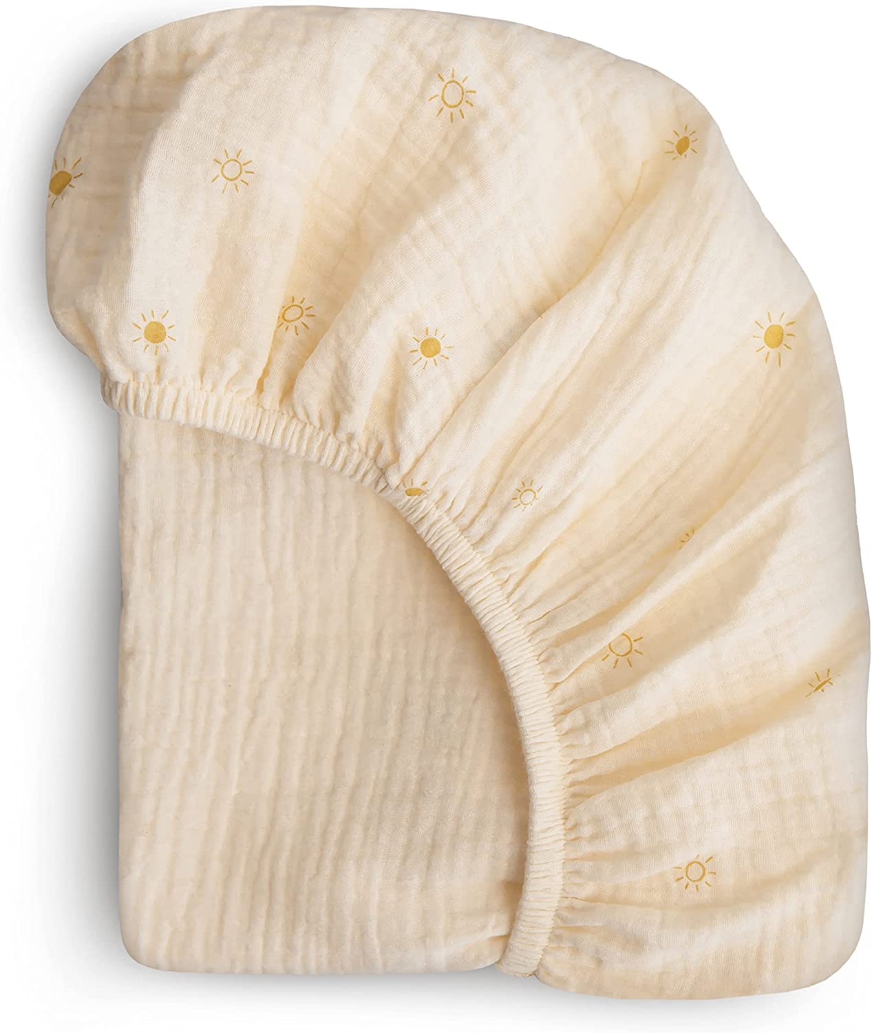 Made from 100% muslin cotton, our cozy, extra soft bassinet crib sheet is pre-washed for softness against baby's delicate skin. Muslin fabric stays breathable while keeping your baby warm and cuddly.