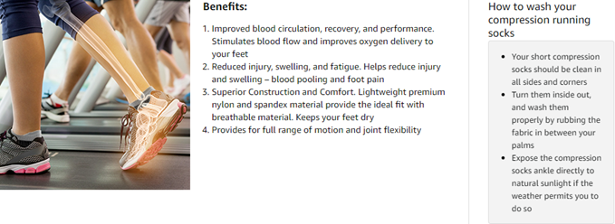 - [MORE COMPRESSION FOR EXERCISE] COMPRESSION is proven to improve blood flow, move faster, react quicker and use less energy. Targeted compression zones provide varying levels of support from moderate to extra firm. These ankle compression socks are designed to promote blood circulation and oxygen flow preventing cramping, fatigue, swelling and helps in muscle recovery, plantar fasciitis