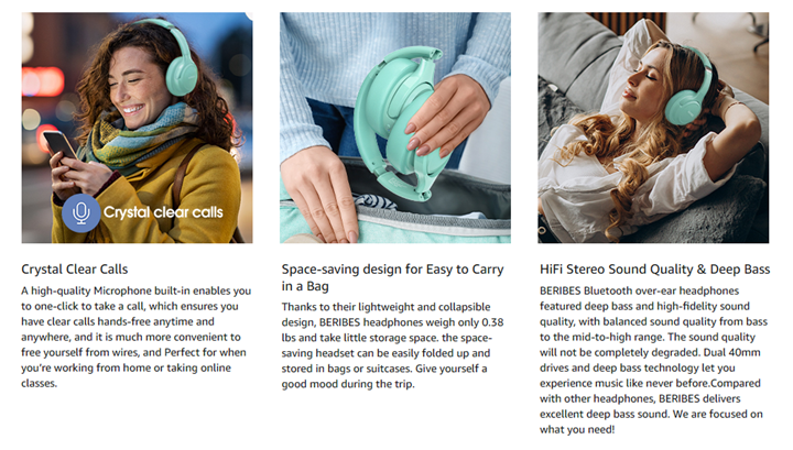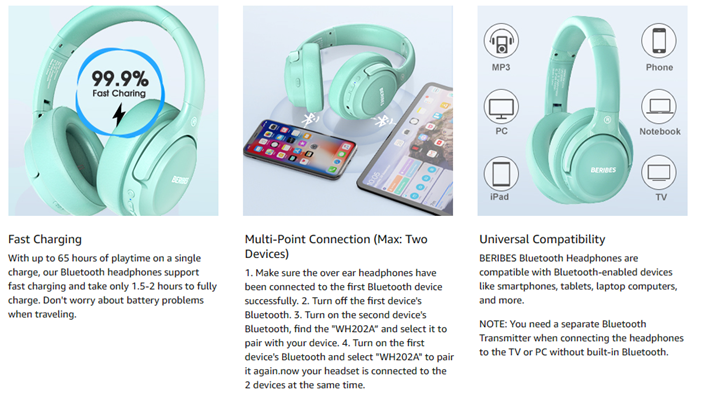 The BERIBES Bluetooth headphones will give you a deep, powerful, and immersive sound at any volume, make your overall listening experience just that much better. Our goal has always been committed to providing our customers with better sound quality as the focal point of our engineering.