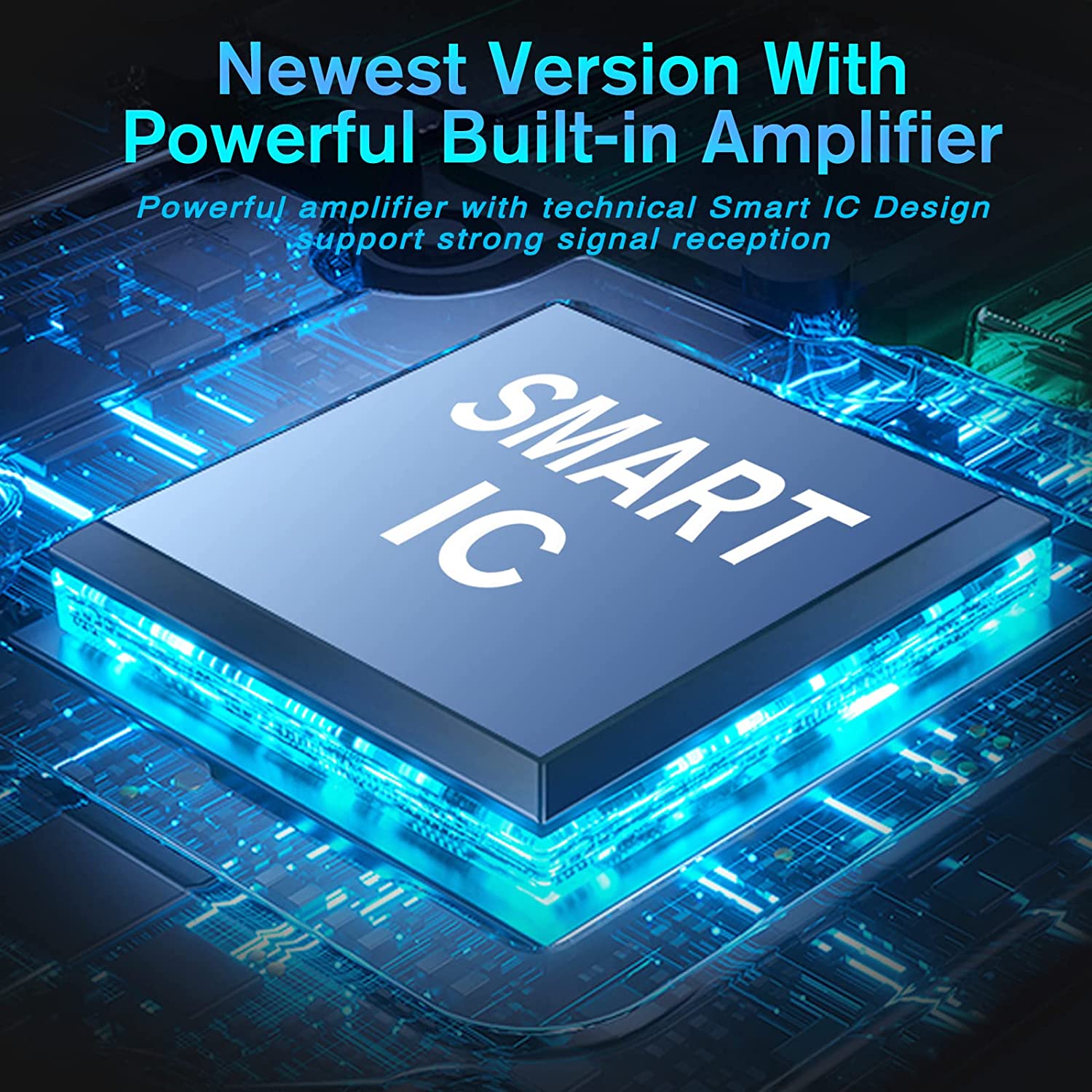 - ?【Up to 580+ Miles Range Reception 】: This hd tv antennas built-in the most advance Smart IC Chip and Powerful Amplifier Signal Booster. Using unique technology that optimizes signal transmission and avoids interference from other signals, it greatly increases the received signal range by up to 580+ miles, allowing you to enjoy the most TV channels for free.