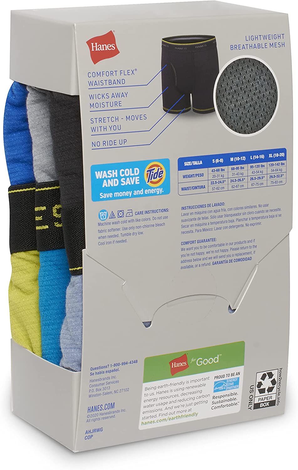 Hanes Boys' Underwear, Cool Comfort Stretch Mesh Boxer Briefs, 6-Pack