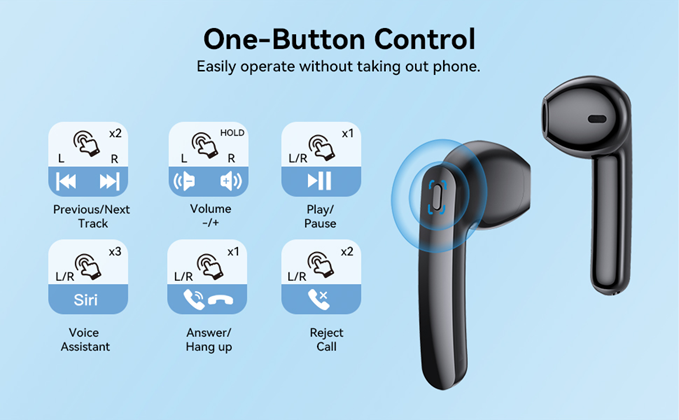 * No need to take out your phone, simply click the earbuds multi-function button, you can easily control music and calls.