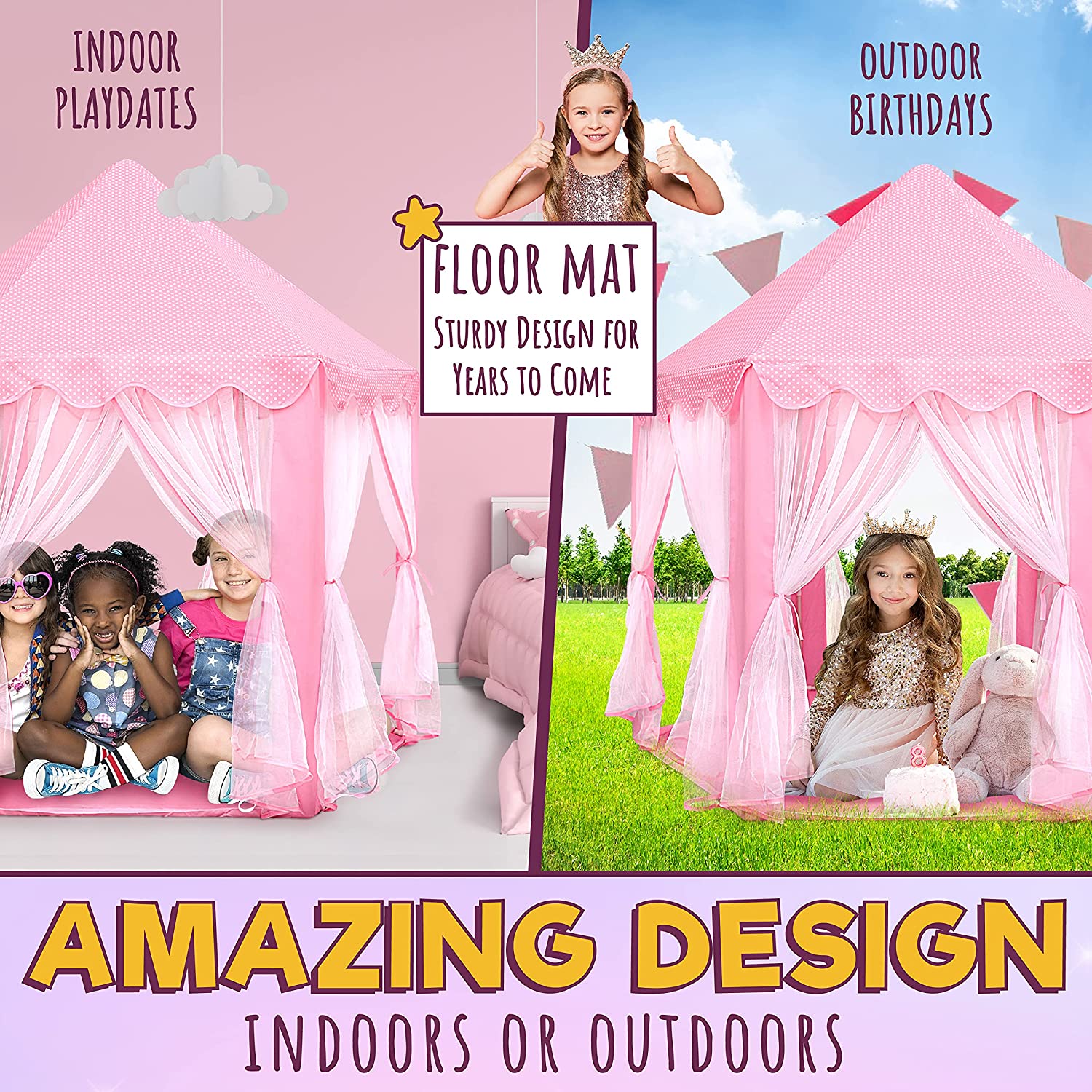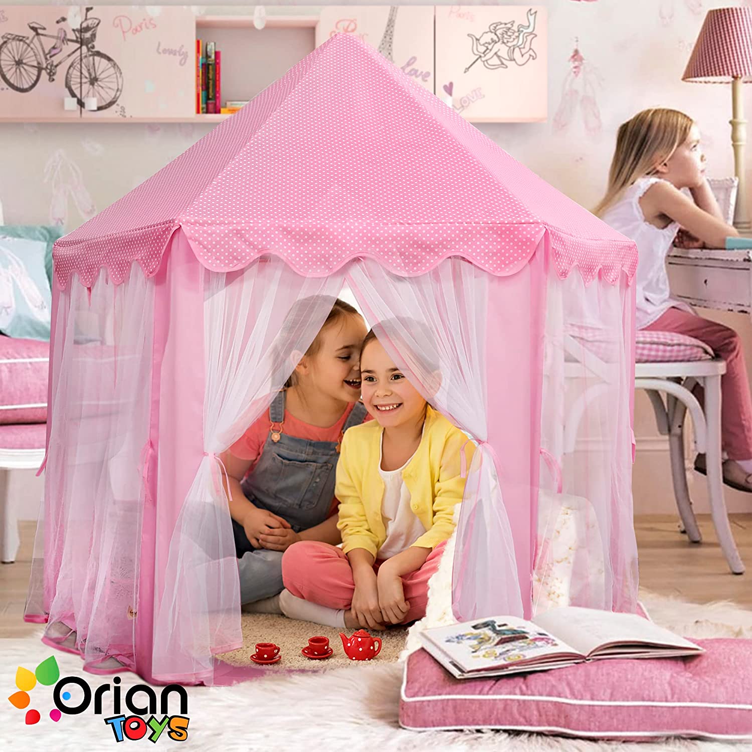 ORIAN Princess Castle Playhouse Tent for Girls with LED Star Lights – Indoor & Outdoor Large Kids Play Tent for Imaginative Games – ASTM Certified, Princess Tent, 230 Polyester Taffeta. Pink 55"x53".