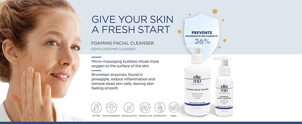 EltaMD Foaming Facial Cleanser, Exfoliating Face Cleanser, Helps Remove Oil and Dead Skin Cells, Safe for All Skin Types, Oil Free, Paraben Free, Sensitivity Free, Sensitive Skin Face Wash, 7 oz Pump