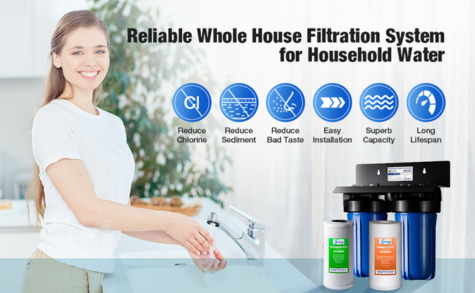 [Easy Installation and Filter Change] The system comes pre-assembled onto the mounting bracket for a streamlined, DIY installation. Filter wrench included to make routine filter changes easy and quick. A pressure release valve allows for the release of built-up pressure when changing filters. Refer to our manual and/or YouTube videos to Install this point-of-entry (POE) filtration system at the main water supply to get clean and healthy water for the entire family.