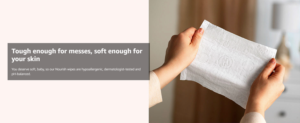 Clean, hydrate, soothe and replenish your baby's delicate skin with the 4 in 1 Sensitive Skincare of Huggies Nourish Baby Wipes. Each baby wipe is lightly scented and enriched with cocoa and shea butter for a luxurious experience. Offering you plant-based ingredients* for over 20 years, these diaper wipes are hypoallergenic, dermatologist-tested and pH-balanced to help maintain healthy skin. They are also alcohol free, paraben free and do not contain phenoxyethanol or MIT. Plus, with a push-button feature and EZ Pull 1-Handed Dispensing, it’s easy to grab wipes when your hands are full. Featuring Disney's The Lion King designs that are as cute as your baby, Huggies Nourish disposable wipes are perfect to pair with your Huggies diaper! Join Huggies Rewards+ powered by Fetch to get rewarded. Earn points on Huggies diapers and wipes, in addition to thousands of other products to redeem for hundreds of gift cards. Download the Fetch Rewards app to get started today! (*70%+ by weight)