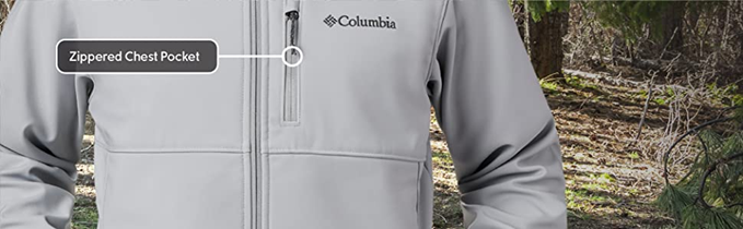 This wind-and-water-resistant softshell will keep you warm—whether you want to stand out or blend right in. It's built for foul-weather outings, with a comfort stretch fit, an adjustable hem, and adjustable cuffs. Made of a durable yet light 100% polyester, with a soft, abrasion resistant chin guard and multiple zippered pockets. Columbia offers this jacket in multiple colors and sizes. Regular Fit. Extended sizing available. To ensure the size you choose is right, utilize our sizing chart and the following measurement instructions: For the sleeves, start at the center back of the neck and measure across the shoulder and down to the sleeve. If you come up with a partial number, round up to the next even number. For the chest, measure at the fullest part of the chest, under the armpits, and over the shoulder blades, keeping the tape measure firm and level.