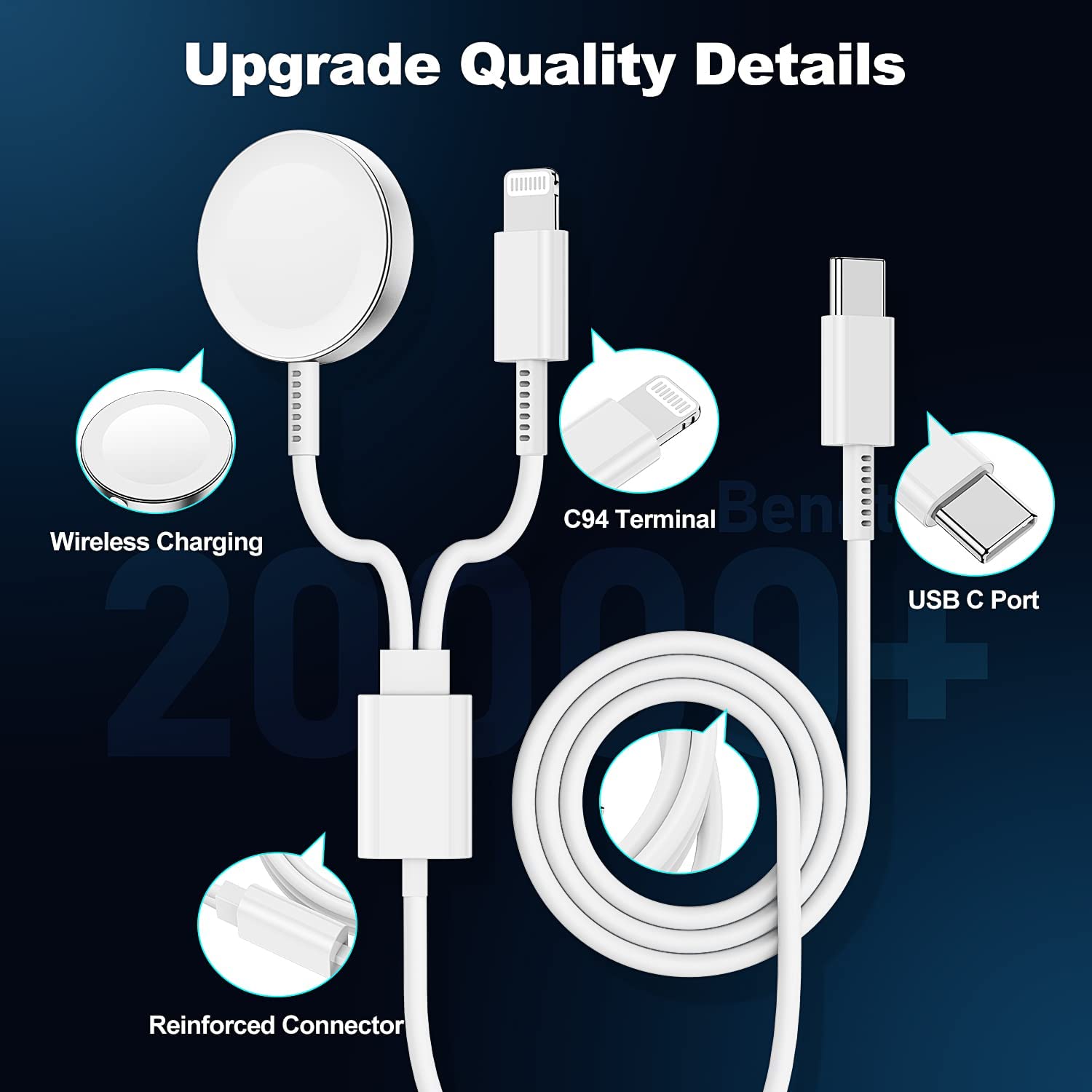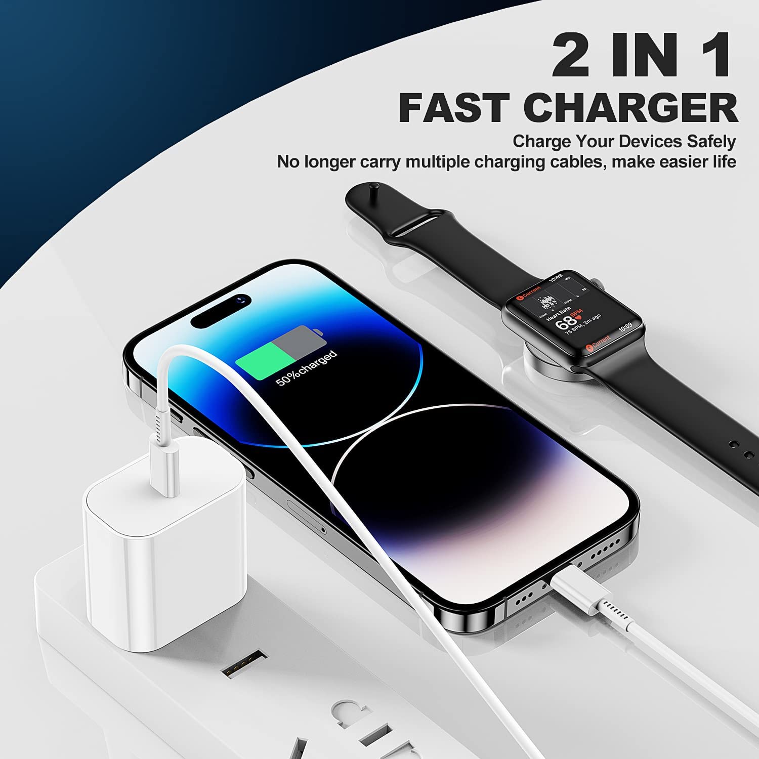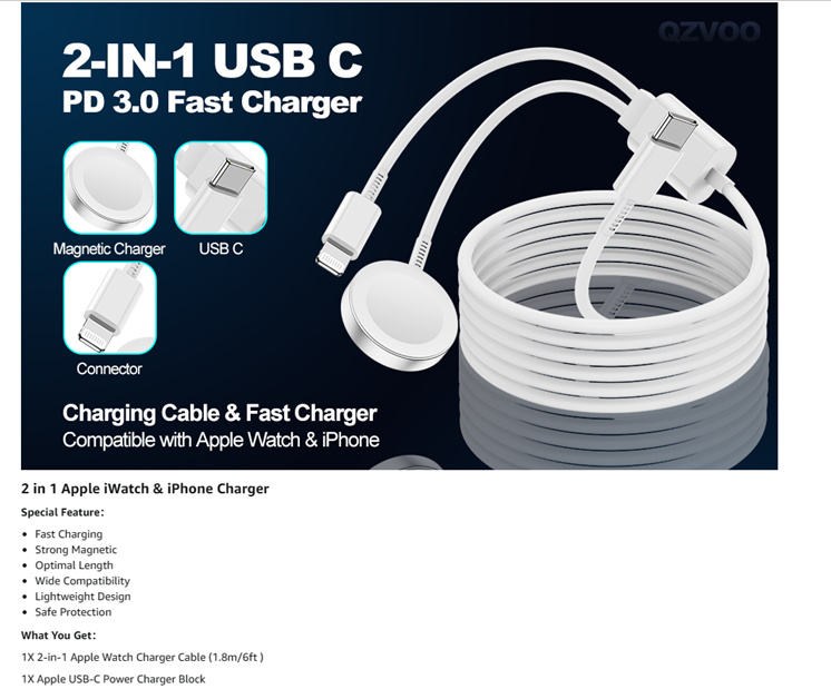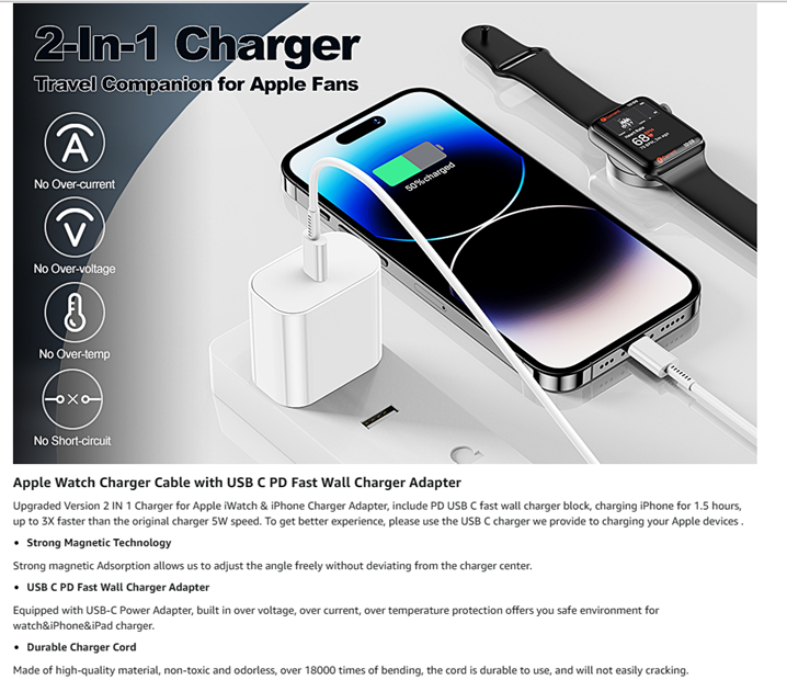 • [2 in 1 Apple Watch & iPhone USB C Charger]: The newest apple watch magnetic charging cable can charge charge for your iWatch and iPhone, iWatch and iPad, iWatch and Airpods simultaneously. Avoid the trouble of carrying multiple charging cables, this apple watch charger make your life convenience.