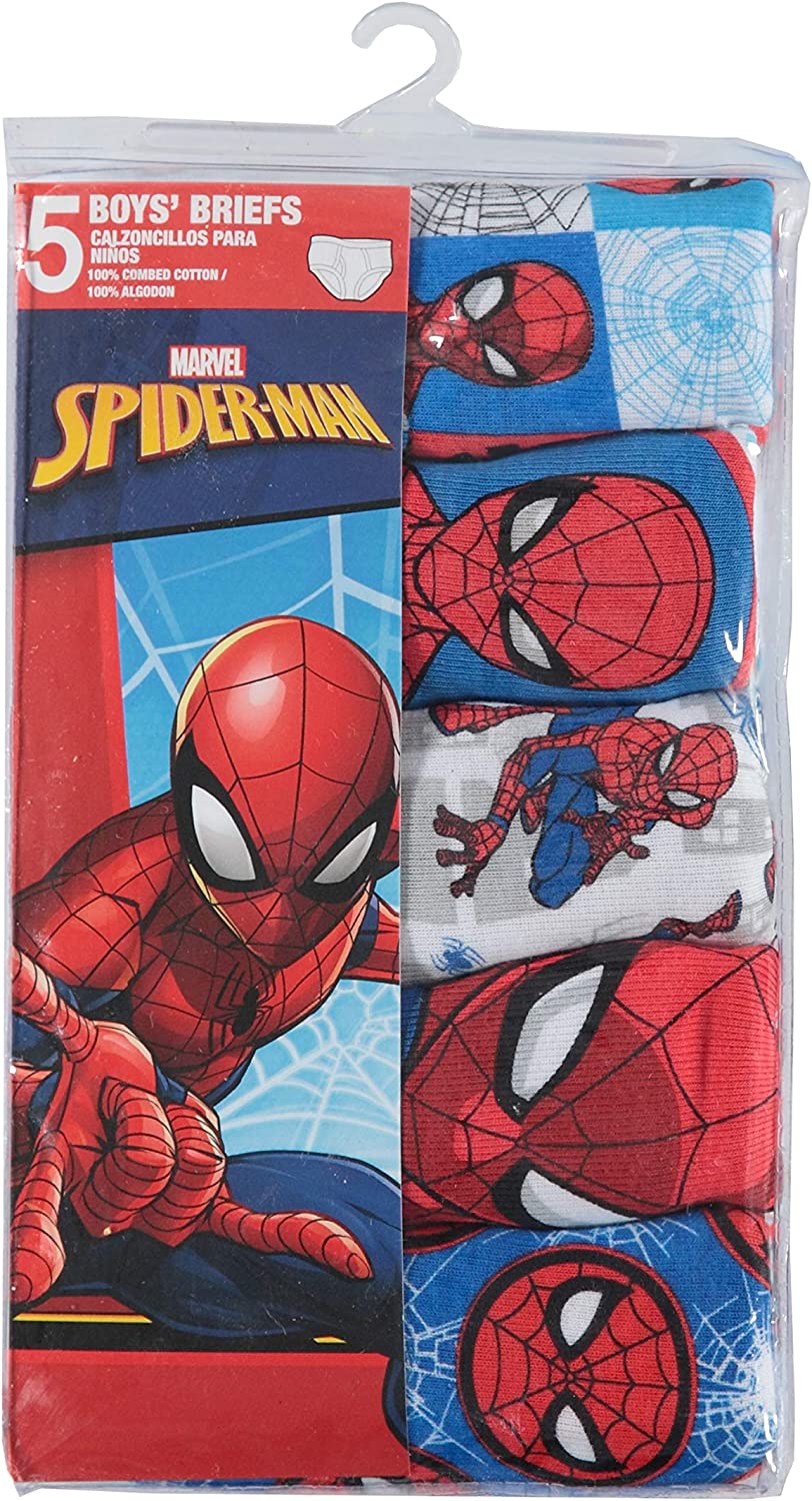 Five pairs of classic brief-style underwear in Spider-Man motif