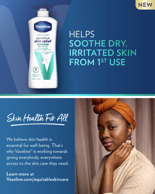 Vaseline Intensive Care Sensitive Skin Relief Body Lotion is co-created with dermatologists to help soothe sensitive, dry, irritated skin from first use. Vaseline’s moisturizing lotion goes beyond basic moisturization. Our Intensive Care range works to heal dry skin from deep within. Vaseline Intensive Care Sensitive Skin Relief Body Lotion is formulated with a combination of Colloidal Oatmeal and Ultra-Hydrating Lipids, giving you long-lasting and soothing moisture. Our gentle formula is hypoallergenic, fragrance-free, and paraben-free. This hand and body lotion for dry skin provides 48-hour moisture for hydrated, nourished, and healthy-looking skin. How to use: Apply lotion to your hand and spread across your body until absorbed. This fast-acting lotion absorbs quickly to leave your skin hydrated without feeling greasy. Repeat as needed throughout the day. Our skin is in constant contact with the world, and it’s essential to our wellbeing. That’s why we believe everyone, everywhere, deserves healthy skin. We’re working with Direct Relief in our mission to promote better skin health around the world. The Vaseline Healing Project provides dermatological care, Vaseline Jelly and medical supplies needed to help heal the skin of people affected by poverty or emergencies around the world.