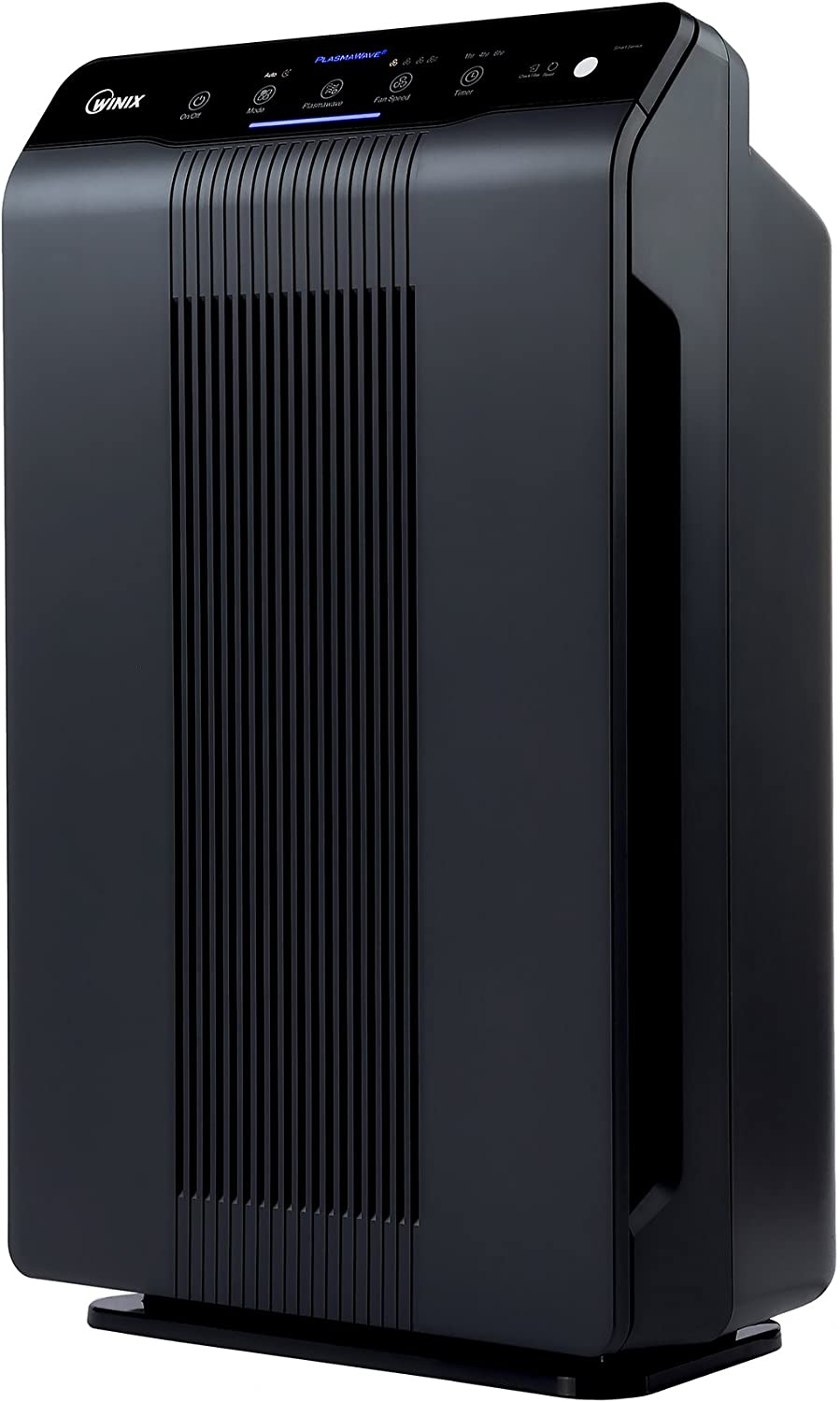 Winix 5500-2 Air Cleaner with PlasmaWave Technology. The Winix 5500-2 Air Cleaner replaces the wildly popular 5500 model. It is designed for any home environment and ready to capture dust, pollen, pet dander, smoke, mold spores, volatile organic compounds, and household odors. This unit is best used for medium to large living spaces, kitchens, or bedrooms. The WINIX 5500-2 uses a 3-Stage Air Cleaning System, featuring a Washable AOCTM Carbon Filter, 99. 97% True HEPA Filter, and Winix PlasmaWave Technology. True HEPA filter captures of airborne pollutants and allergens, while carbon filter traps offensive smoke, cooking and all other household odors. PlasmaWave Technology attacks pollutants at a molecular level to neutralize viruses, bacteria, chemical vapors, odors, and gases in the air. Air Quality Sensor offers Set-and-forget convenience by automatically adjusting your air cleaner settings to meet the needs of your environment. CADR Room Size Rating: 360 square feet - Suitable for bedrooms and living rooms Materials: Abs Dimensions: 14. 9"L x 7. 8"W x 23. 6"H Weight: 17. 5 lbs