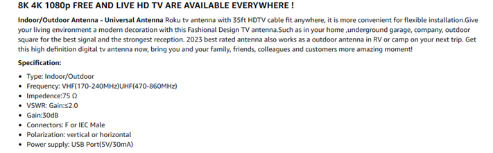 • ?▷【UPGRADED TO 800+ MILE LONG RANGE】- TV antenna for smart tv, equip with 2023 MOST POWERFUL built-in ic chip & HIGH-QUALITY signal amplifier, ensure the stability of signal reception,access to more free channels . Indoor/Outdoor tv antenna has high gain, bring clear pictures, low noise and access to most TV signals.Transfer 8k 4k combination of UHR and HDR video content. You deserved the 2023 Best & Oversized ANTENNA which offers more longer ranges on the market and lndustry-leading Power!