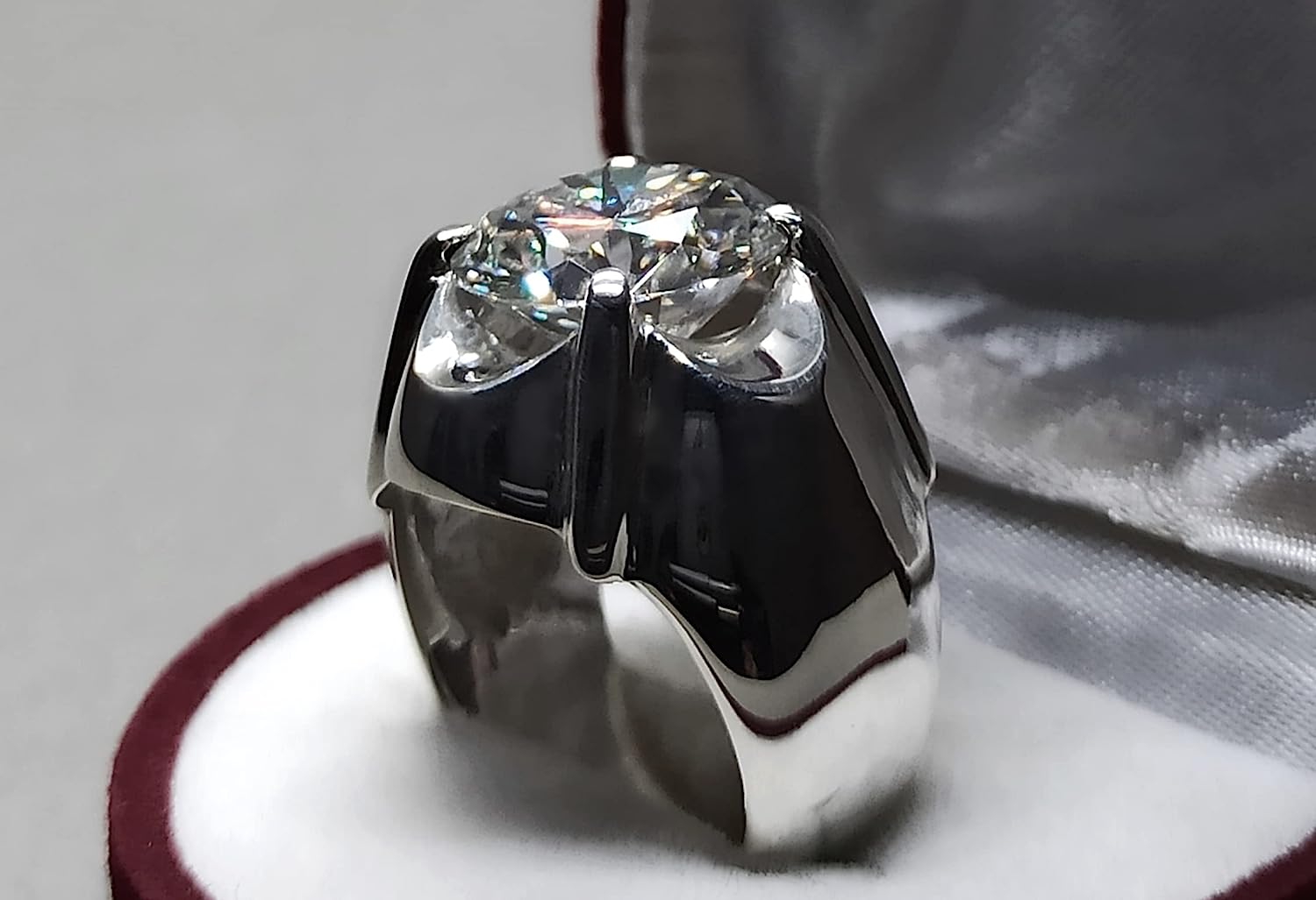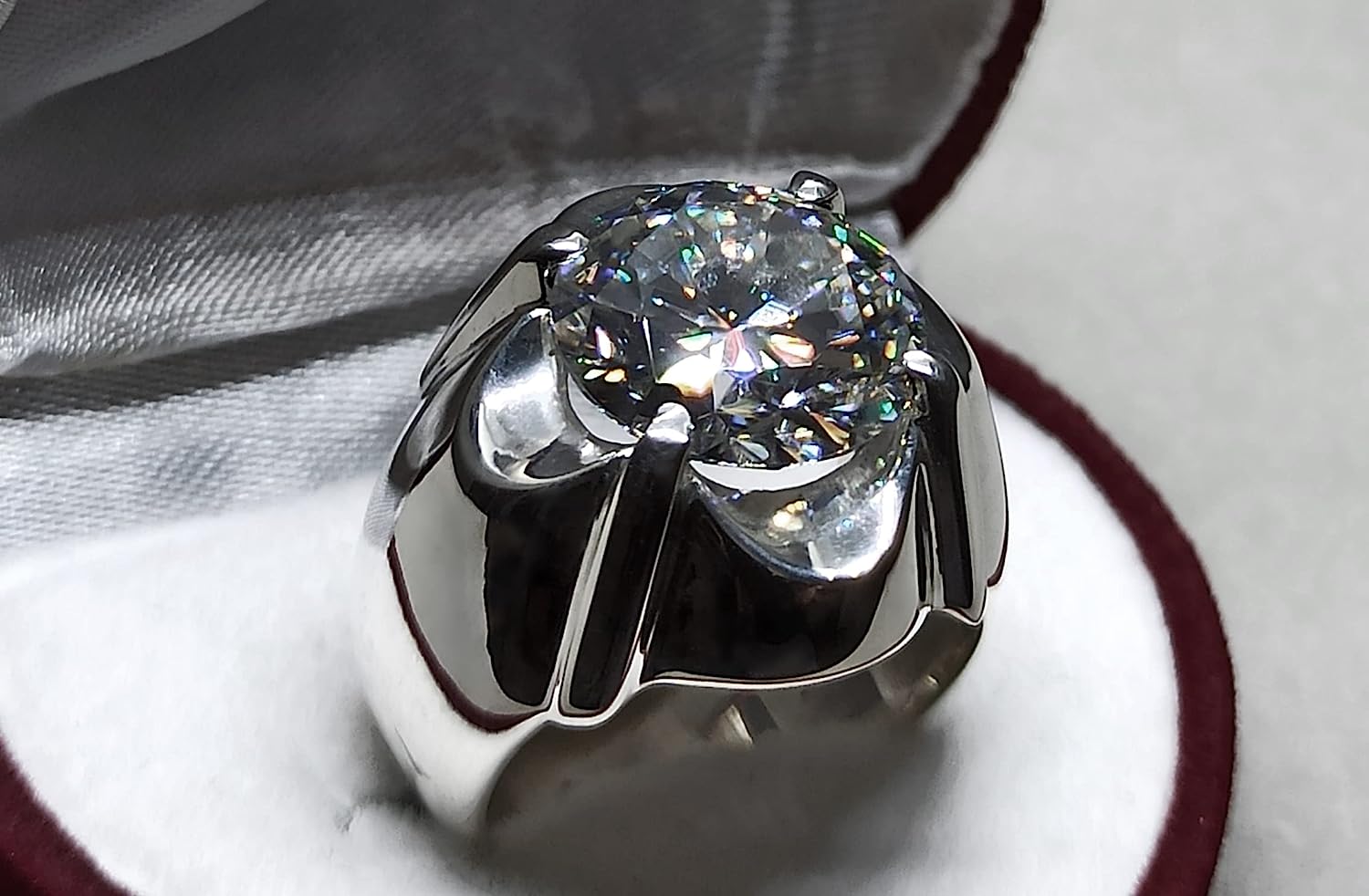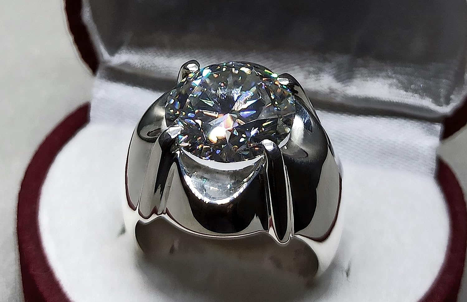 Rare 7 Carat Big Diamond Cut Fire Moissanite Mens Heavy Sterling Silver 925 Handmade Ring Gift for Him Anniversary Ring (9)