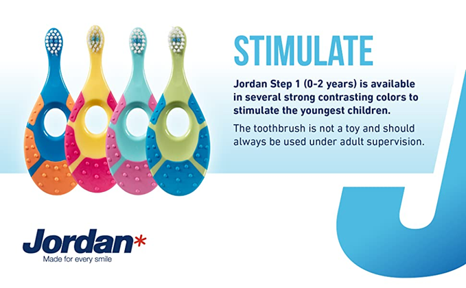 - MADE FOR YOUR BABY - Jordan* is the original brand of this infant toothbrush designed with extra soft bristles, a soft biting ring for babies gums, and a handle that suits adults and babies