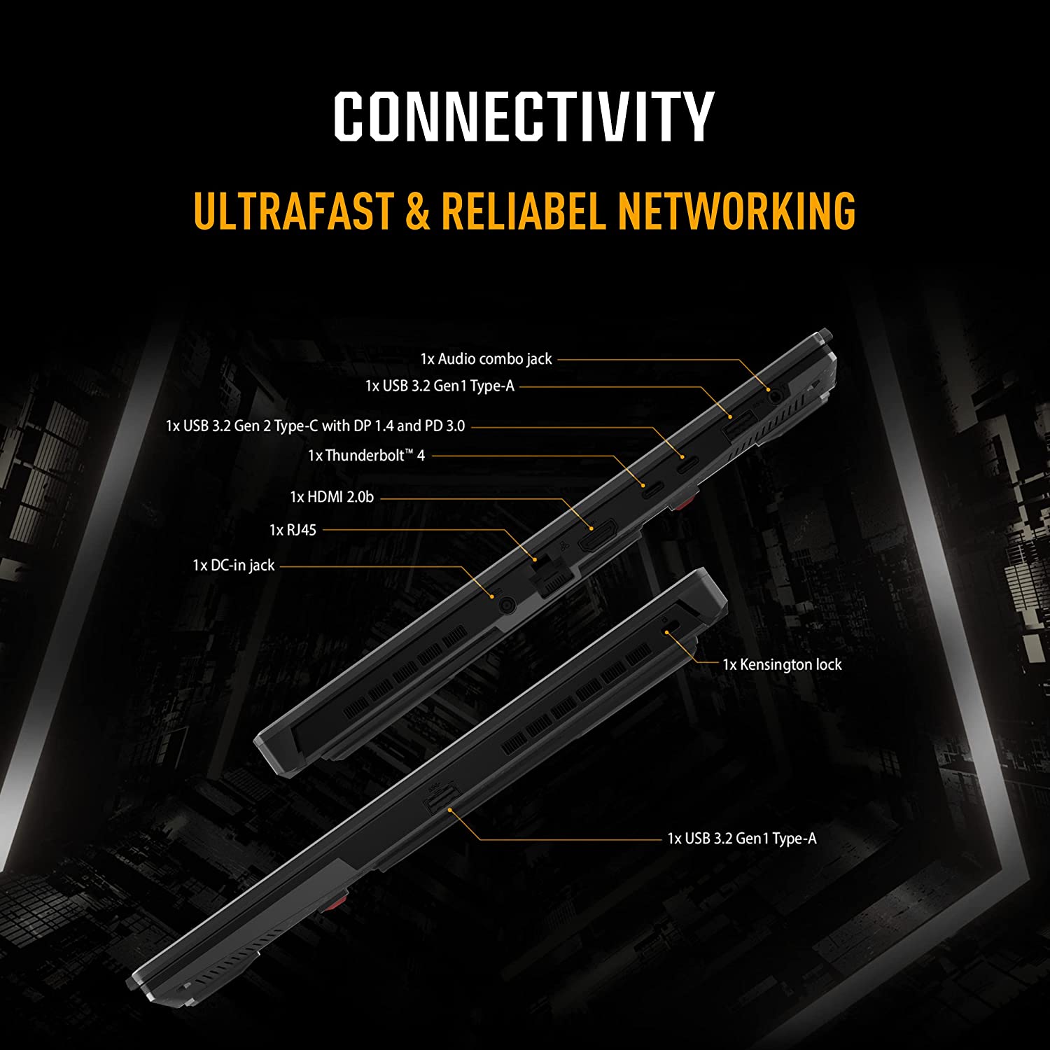 - FULL CONNECTIVITY - Wi-Fi 6, Bluetooth 5.2, 1x Thunderbolt 4, 1x USB 3.2 Type-C (Gen2), 2x USB 3.2 Type-A (Gen1), 1x HDMI 2.0b, 1x 3.5mm Audio Jack, 1x LAN