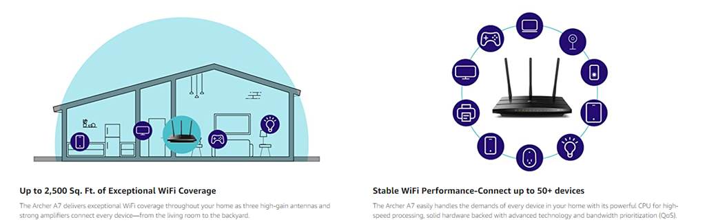 TP-Link AC1750 Smart WiFi Router (Archer A7) -Dual Band Gigabit Wireless Internet Router for Home, Works with Alexa, VPN Server, Parental Control, QoS