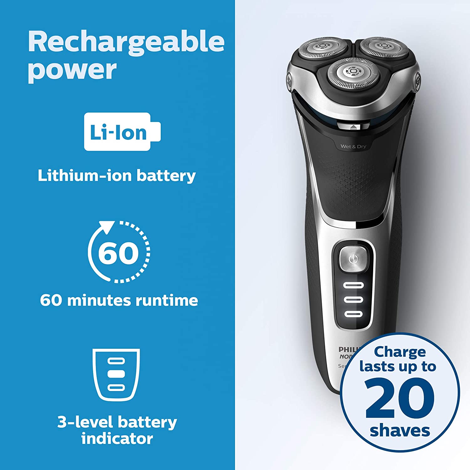 Philips Norelco Shaver 3800 gives you a comfortable, refreshing shave with wet or dry use. 5D Pivot & Flex heads, ComfortCut blade system, and full washability help ensure a smooth, skin-friendly result.